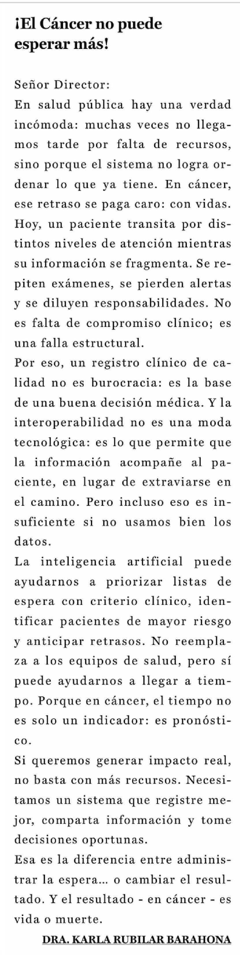 CARTAS: ¡El Cáncer no puede esperar más!