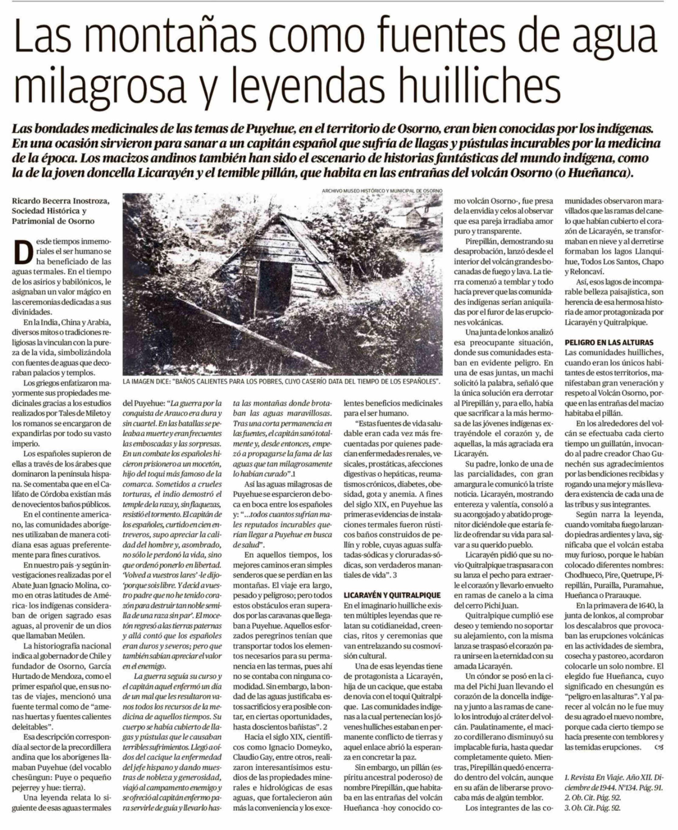 Las montañas como fuentes de agua milagrosa y leyendas huilliches