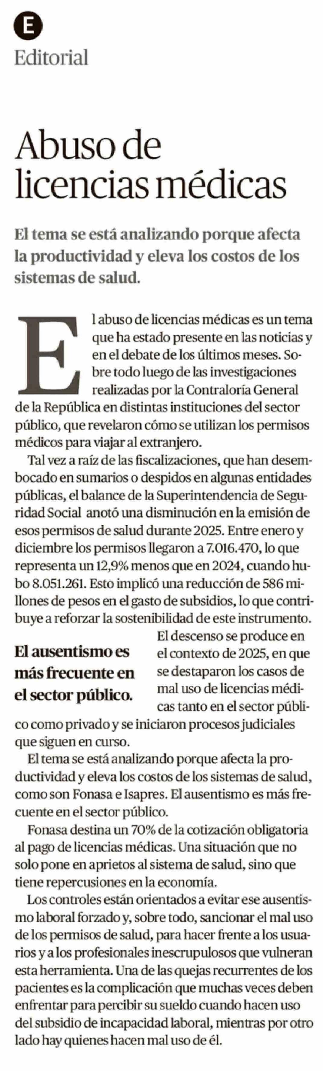 Editorial: Abuso de licencias médicas