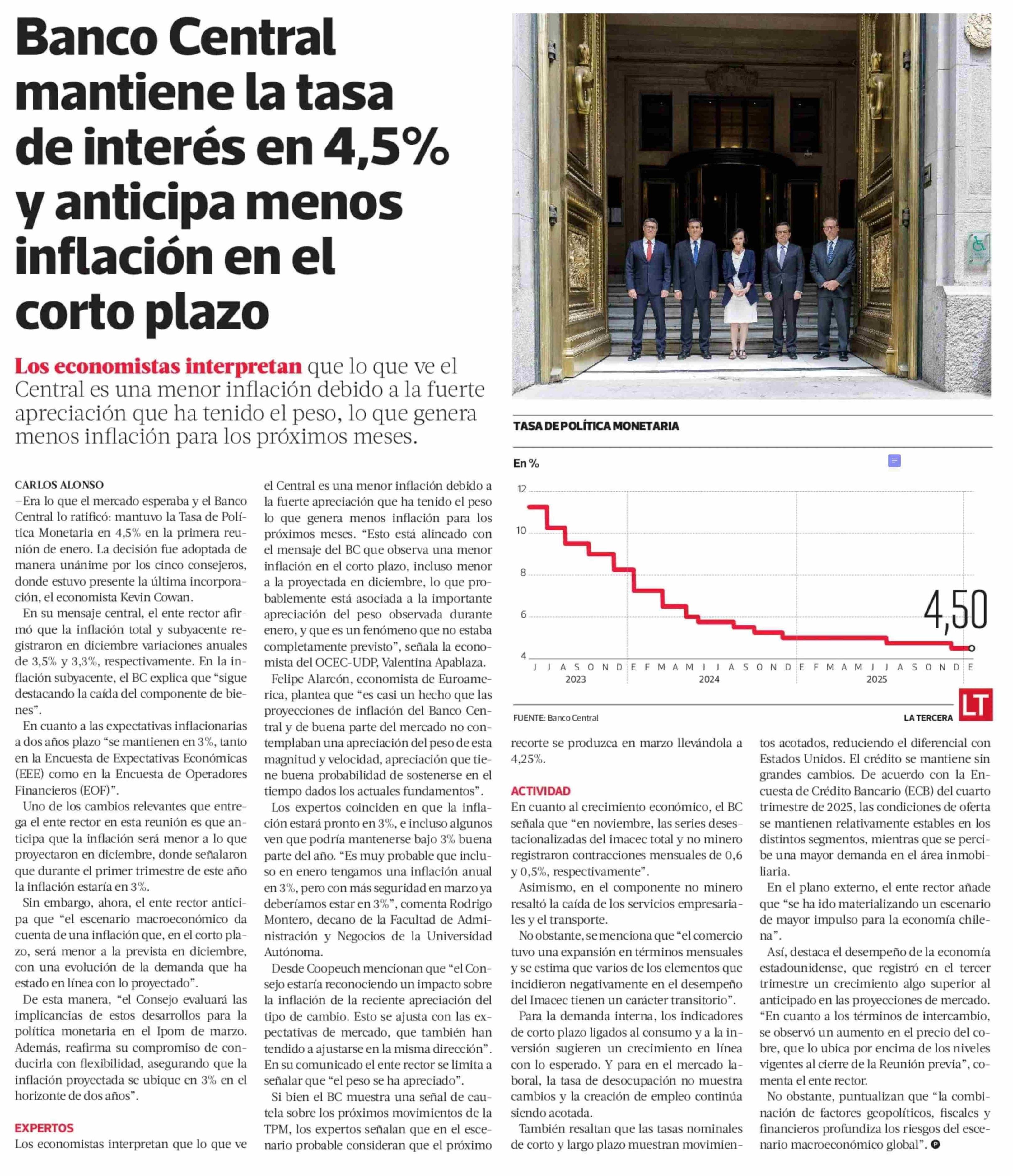 Banco Central mantiene la tasa de interés en 4,5% y anticipa menos inflación en el corto plazo