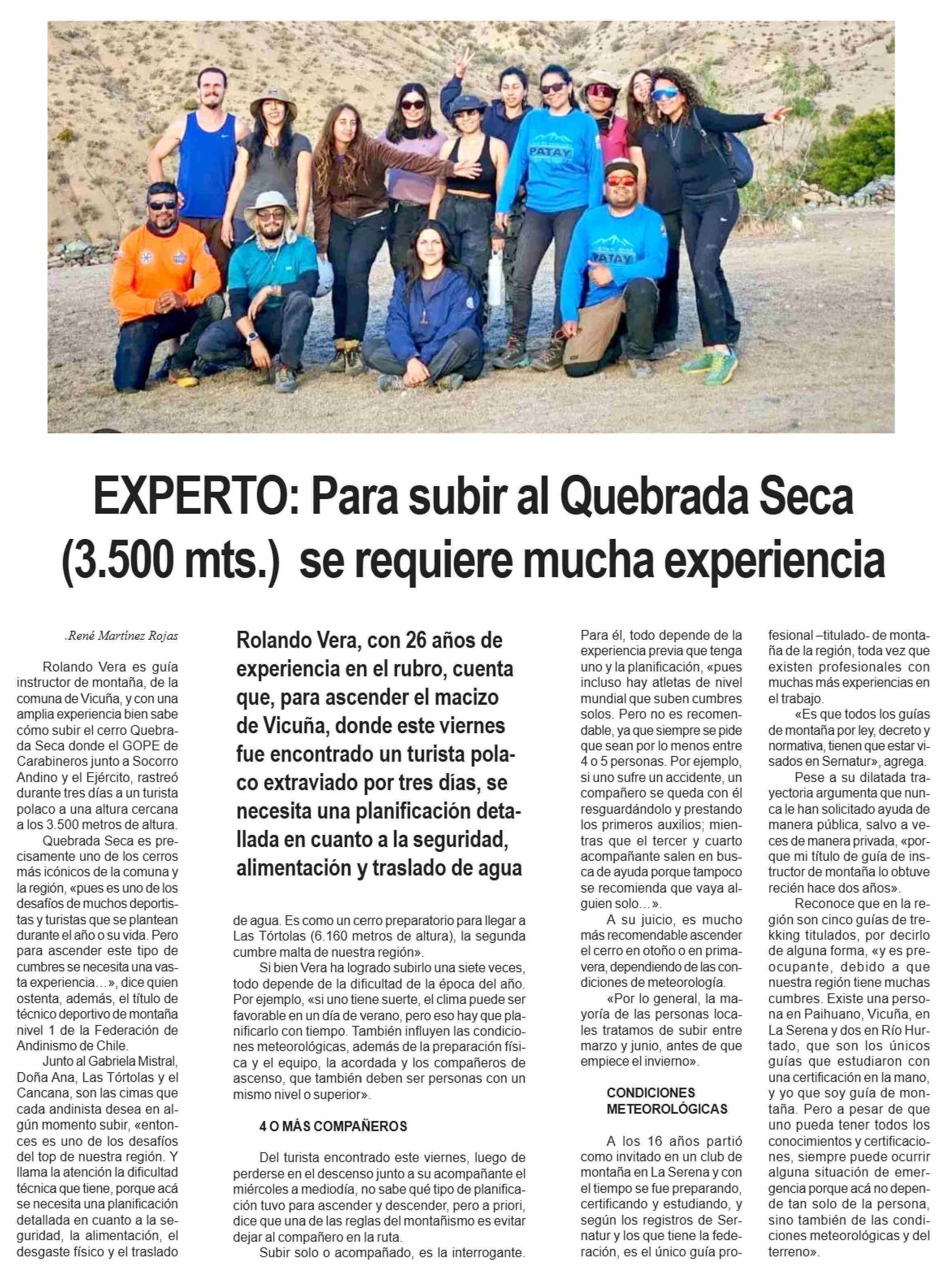 EXPERTO: Para subir al Quebrada Seca (3.500 mts.) se requiere mucha experiencia