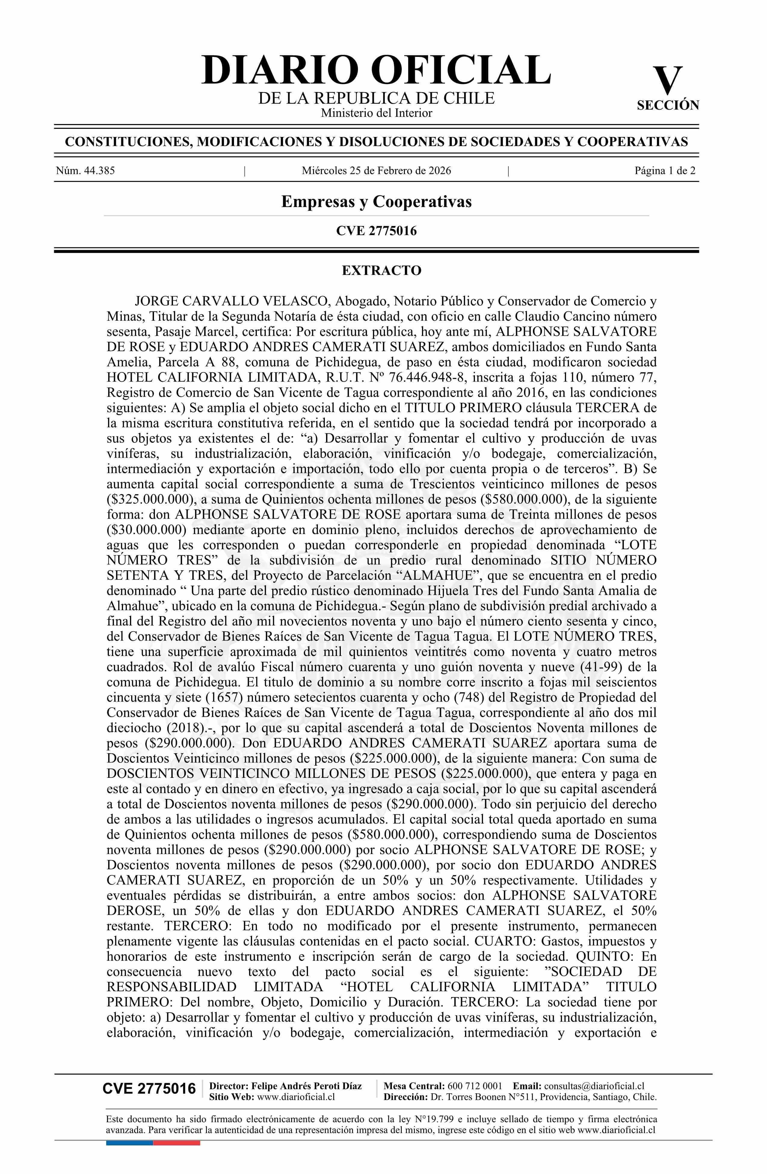 HOTEL CALIFORNIA LIMITADA 76.446.948-8*