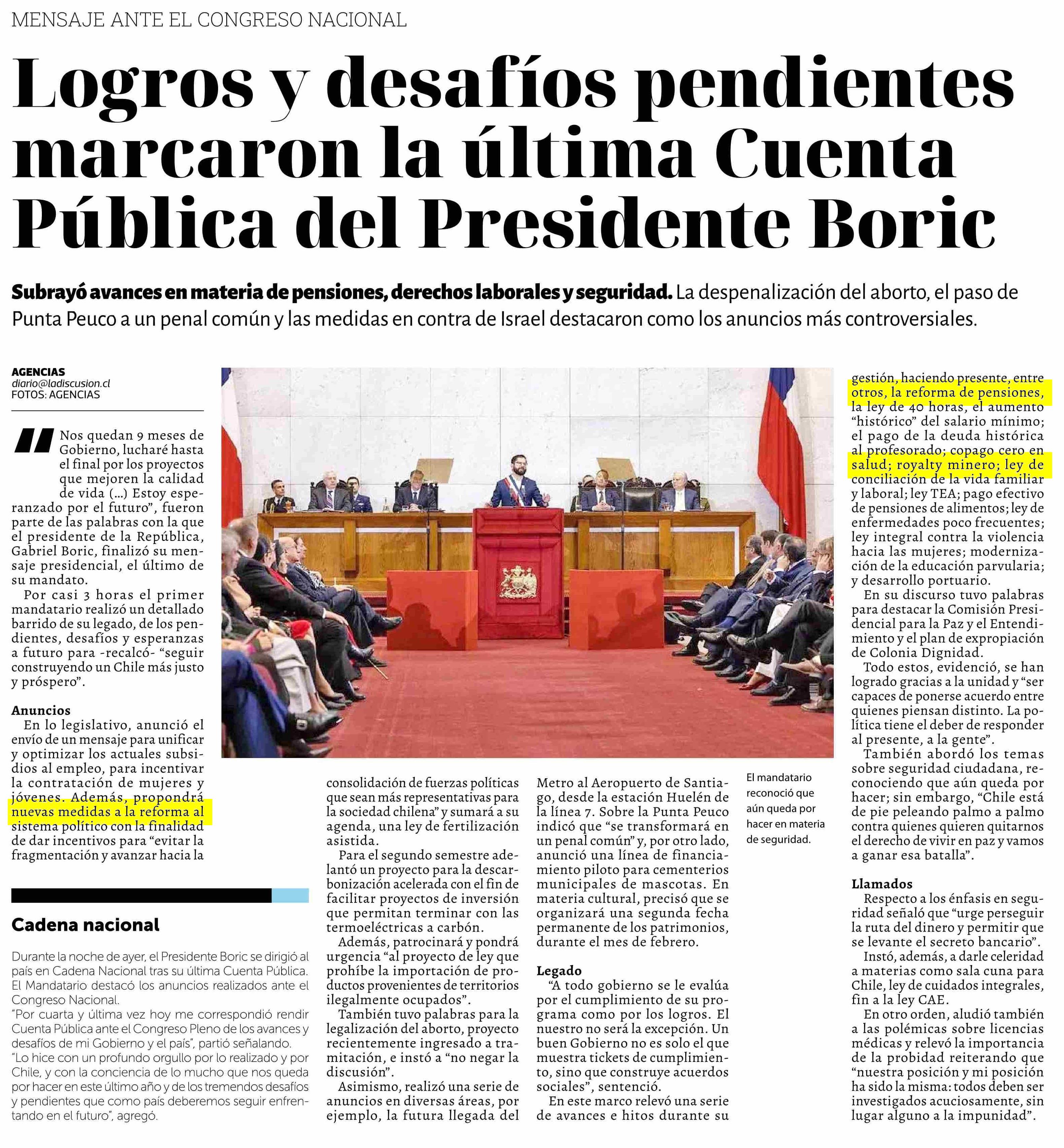 Logros y desafíos pendientes marcaron la última Cuenta Pública del Presidente Boric