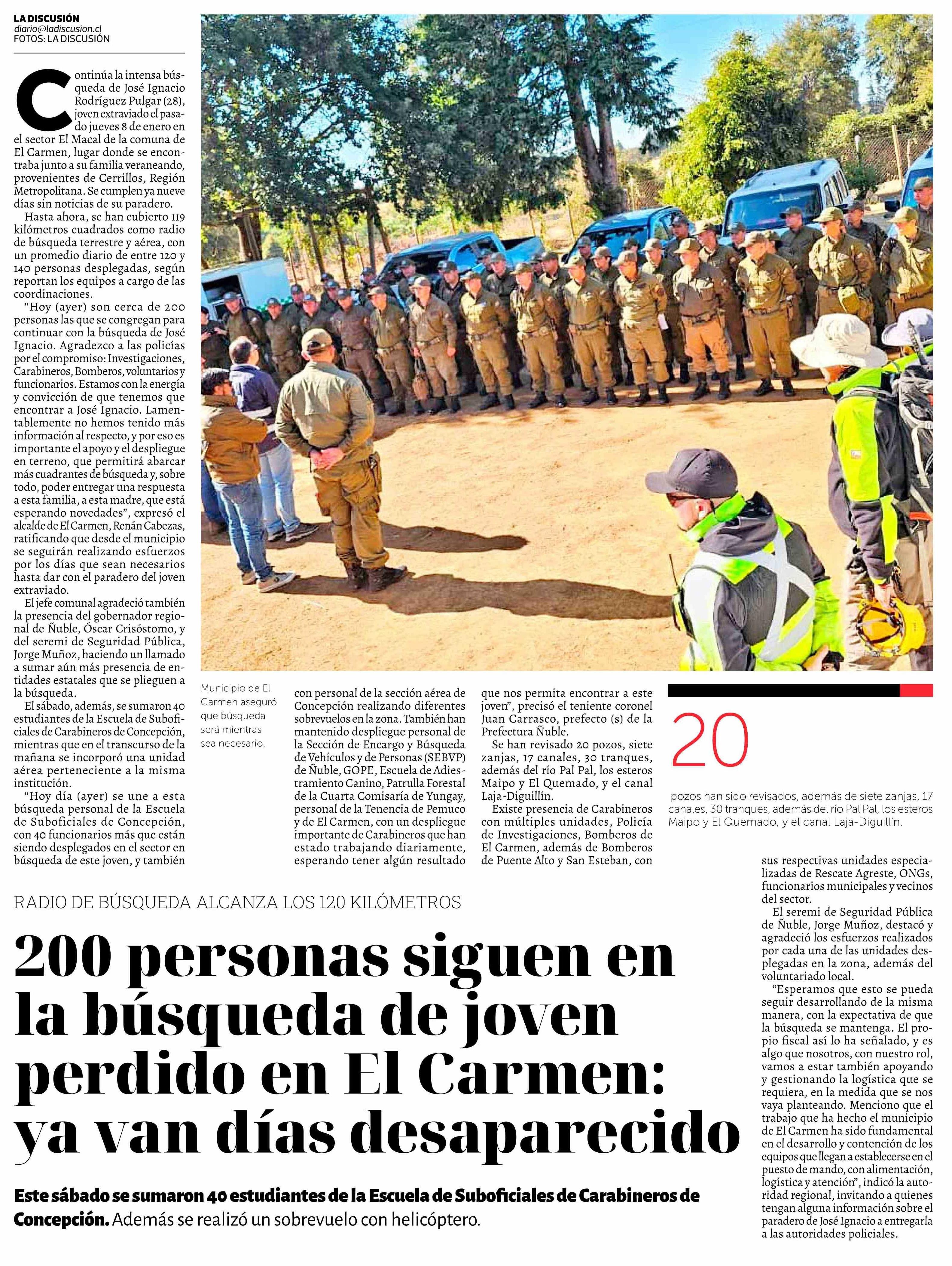 200 Personas siguen en la búsqueda de joven perdido en El Carmen: ya van días desaparecido