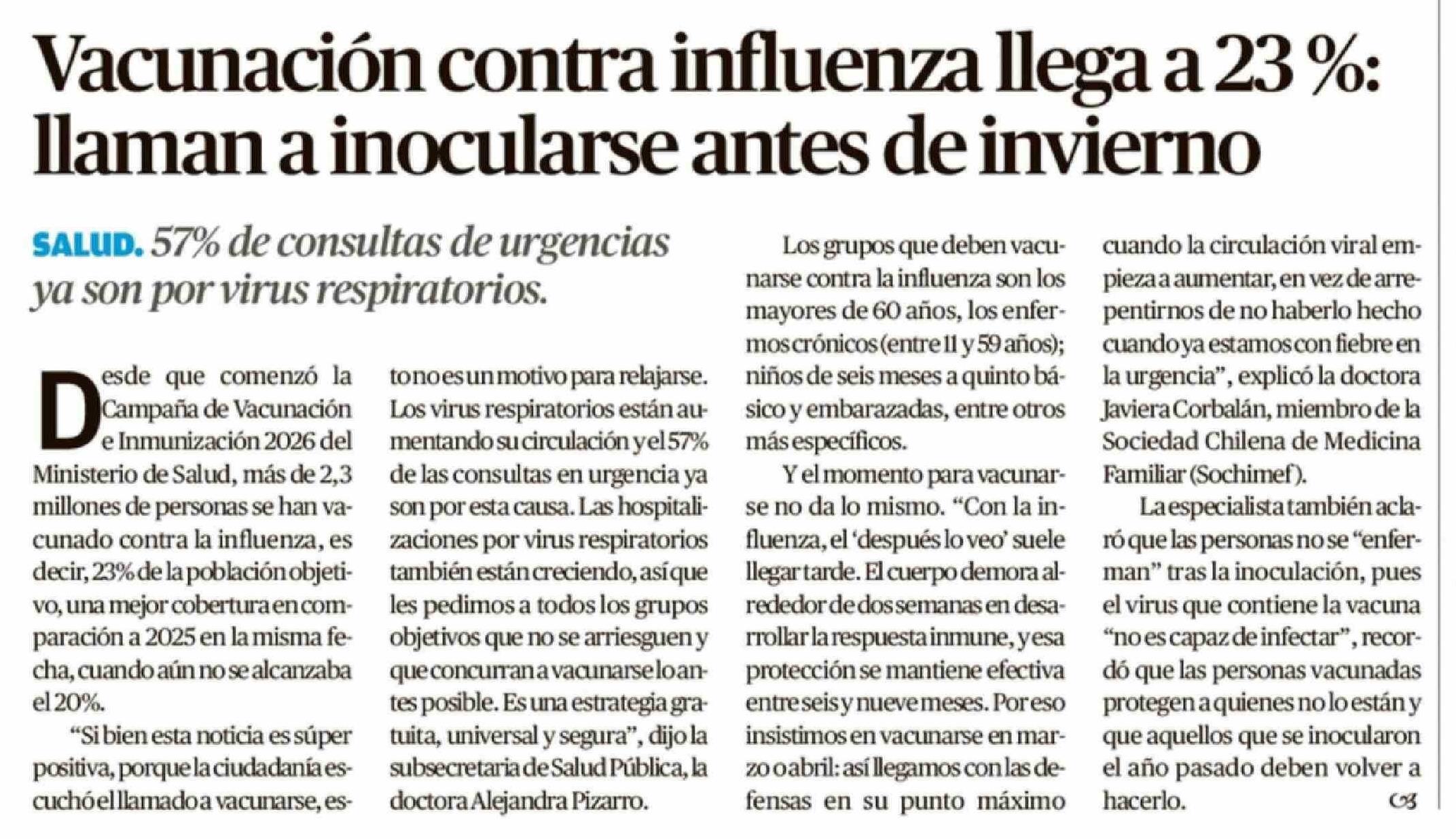 Vacunación contra influenza llega a 23 %: llaman a inocularse antes de invierno