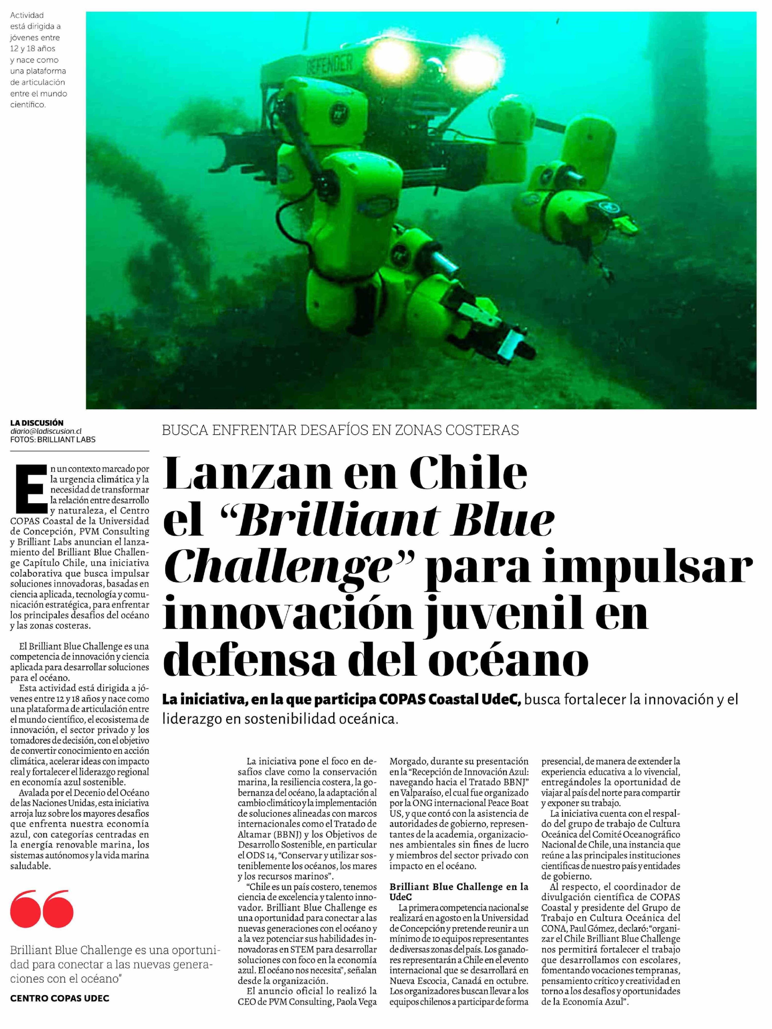 Título: Lanzan en Chile el "Brilliant Blue Challenge" para impulsar innovación juvenil en defensa del océano