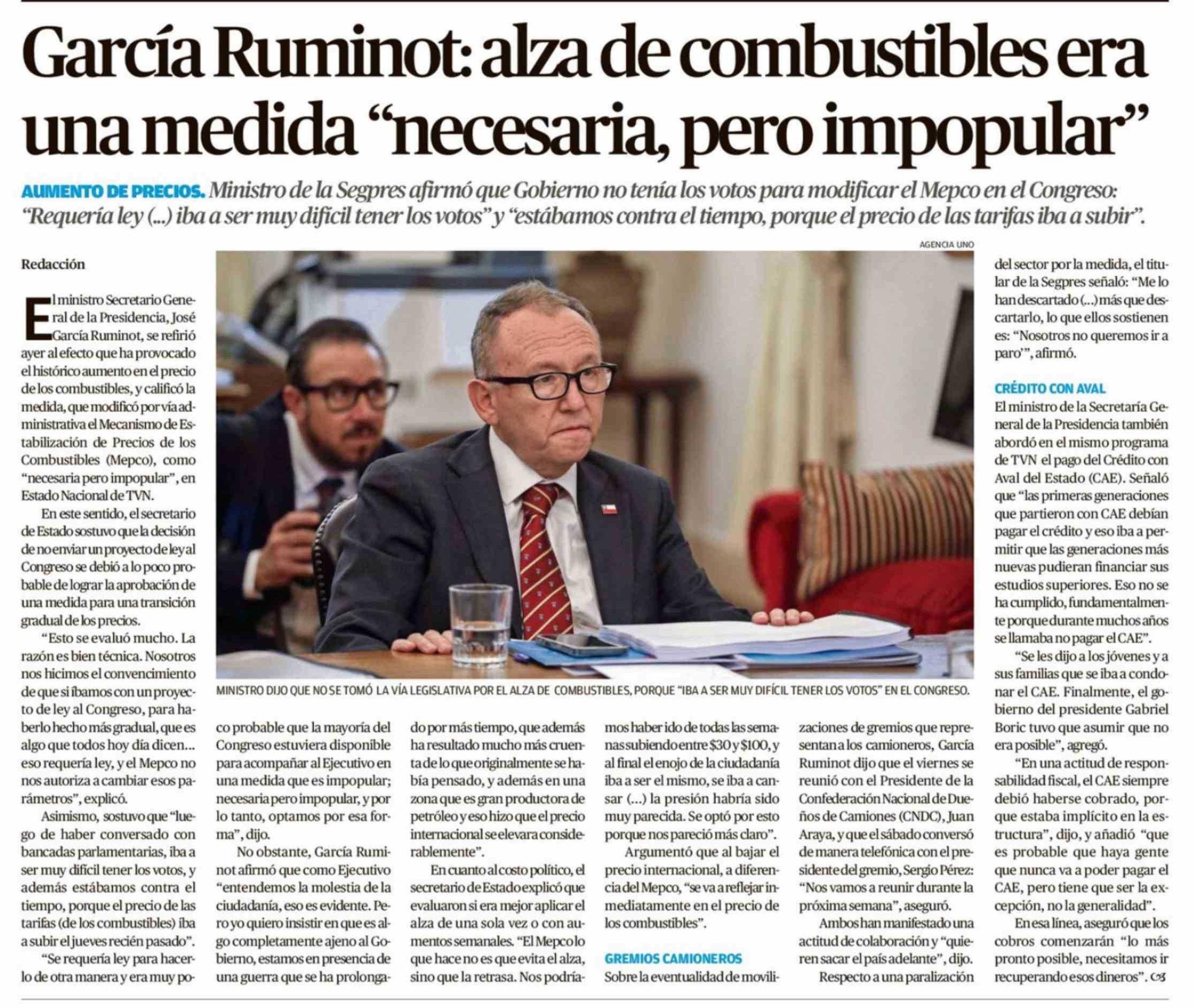 García Ruminot: alza de combustibles era una medida "necesaria, pero impopular"