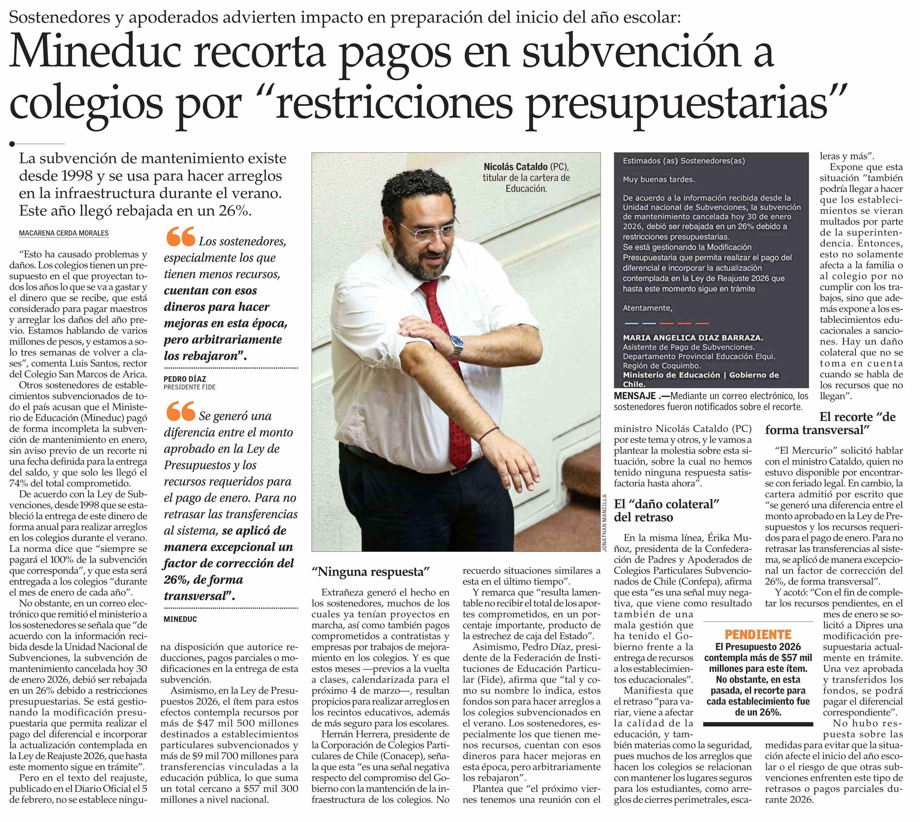 Mineduc recorta pagos en subvención a colegios por “restricciones presupuestarias”
