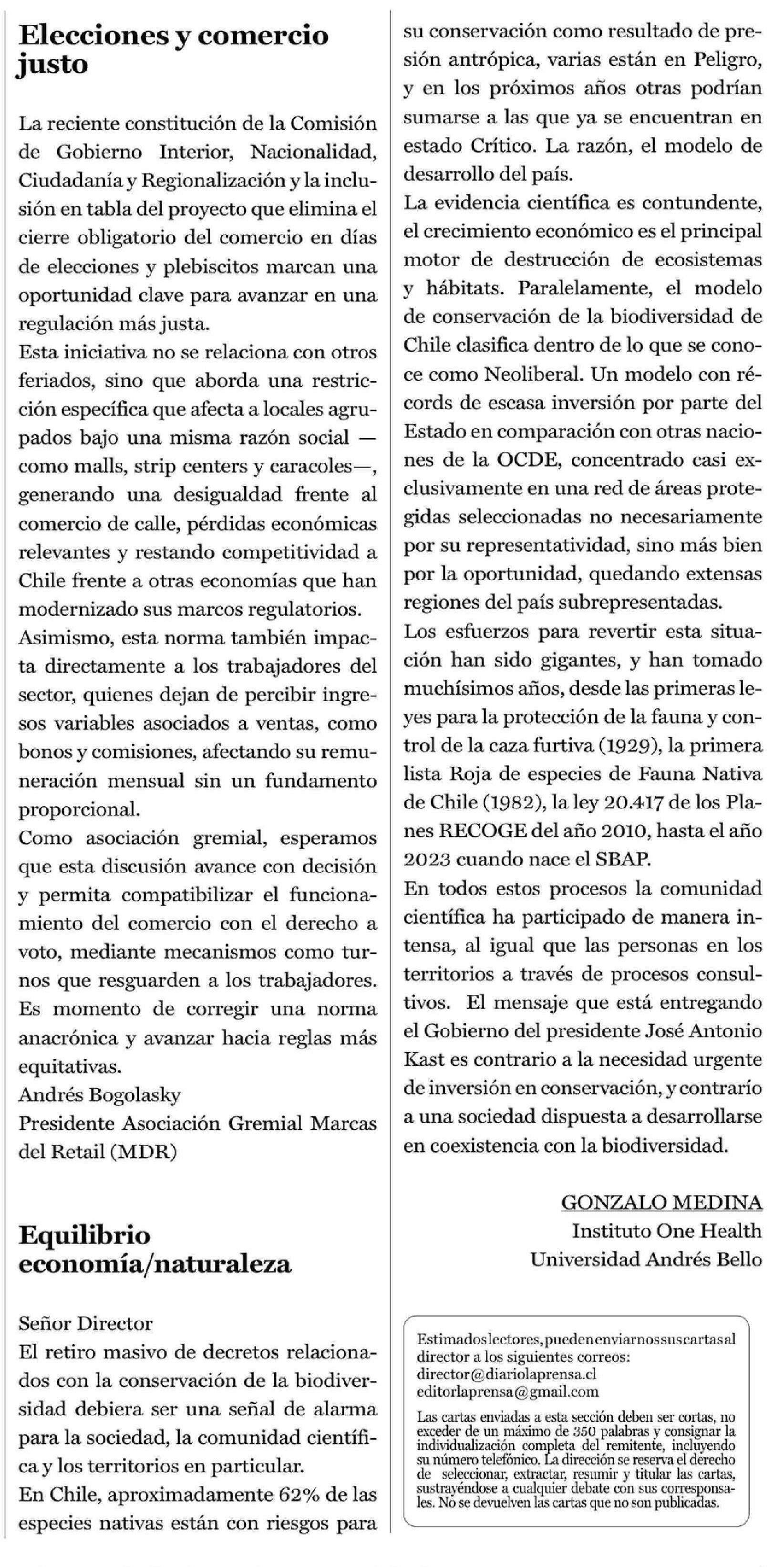 Cartas: Equilibrio economía/naturaleza