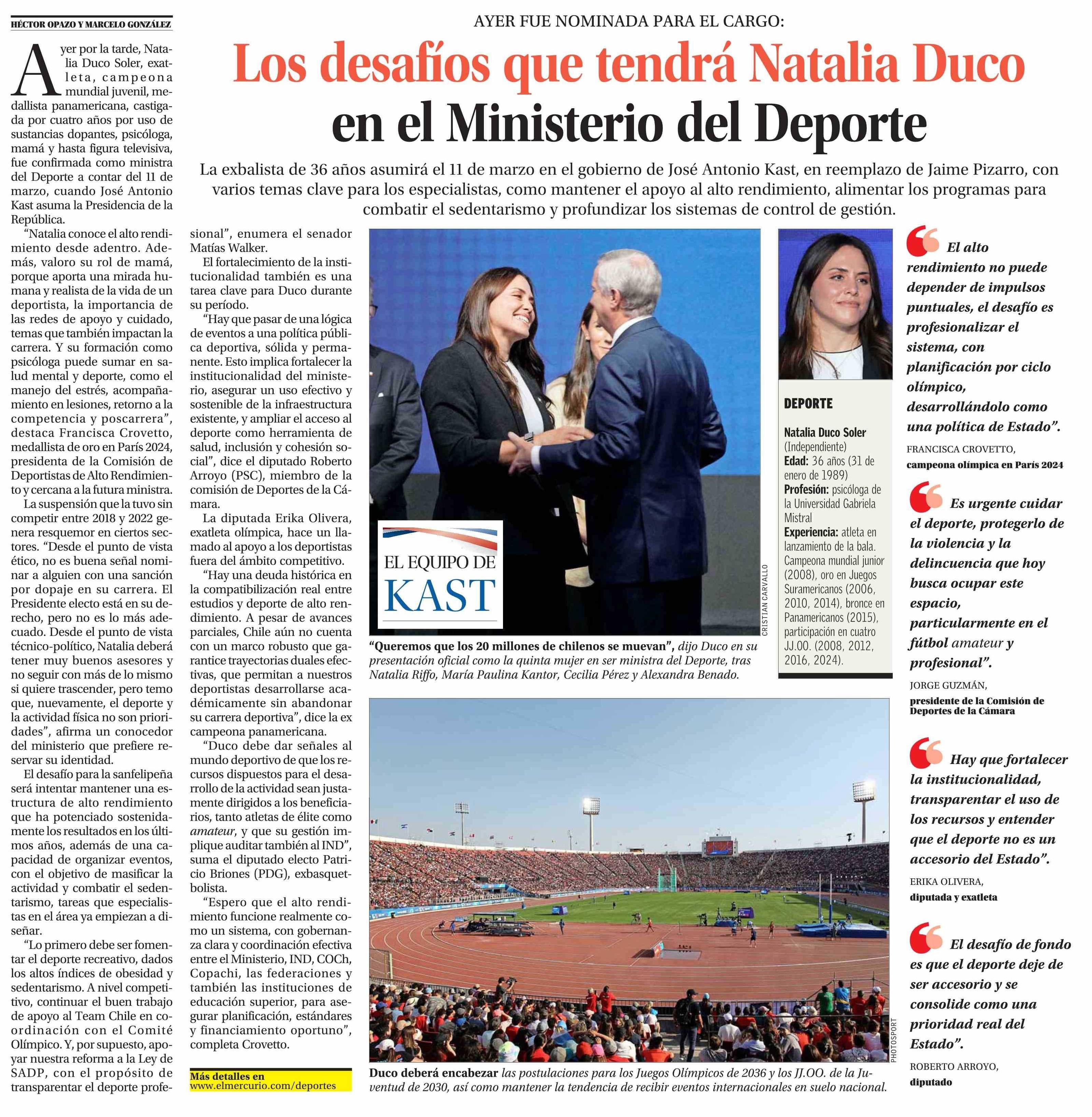 Título: Los desafíos que tendrá Natalia Duco en el Ministerio del Deporte