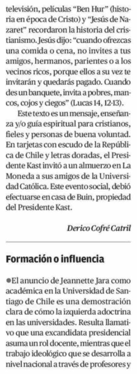 CARTAS: Gobierno y almuerzo