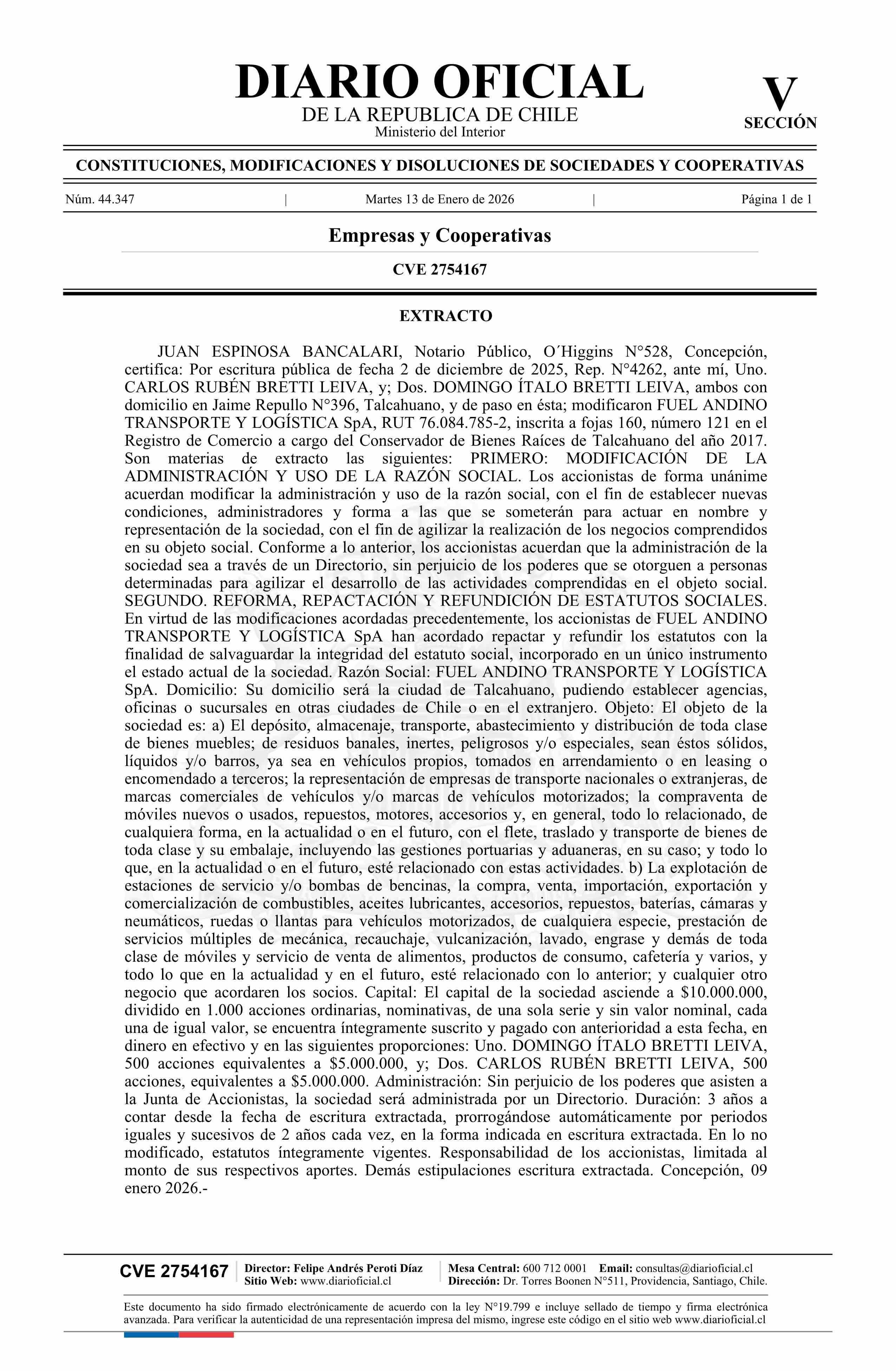 FUEL ANDINO TRANSPORTE Y LOGÍSTICA SpA 76.084.785-2
