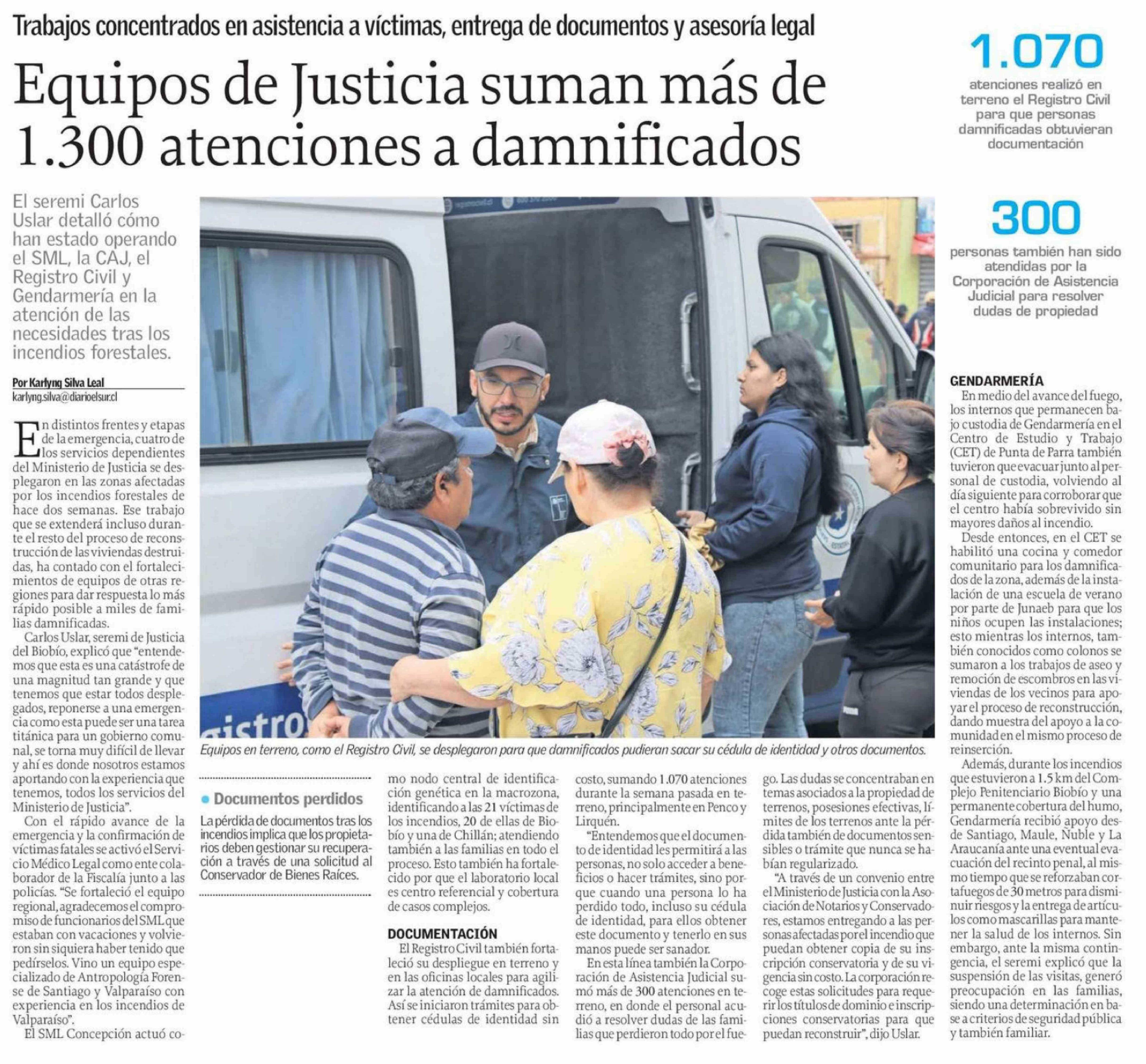 Equipos de Justicia suman más de 1.300 atenciones a damnificados