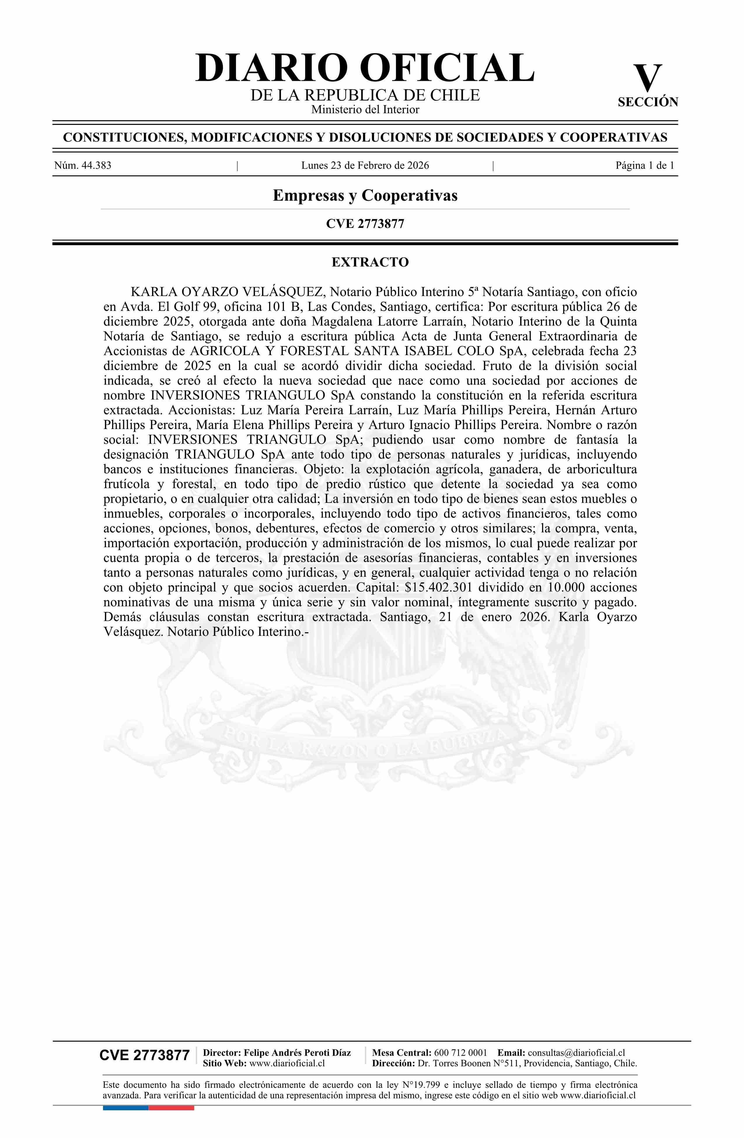 Título: Inversiones Triangulo SpA