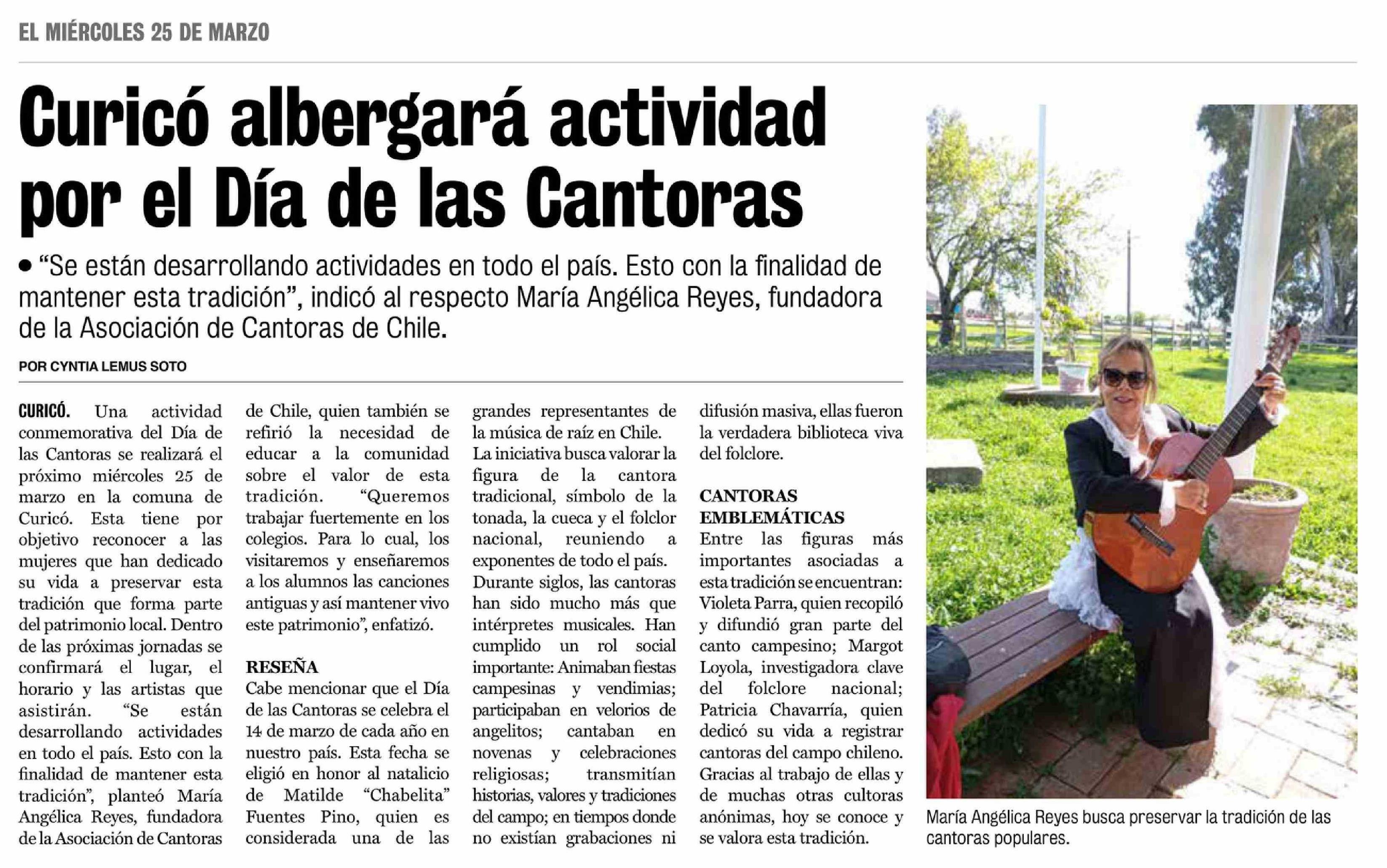 Curicó albergará actividad por el Día de las Cantoras