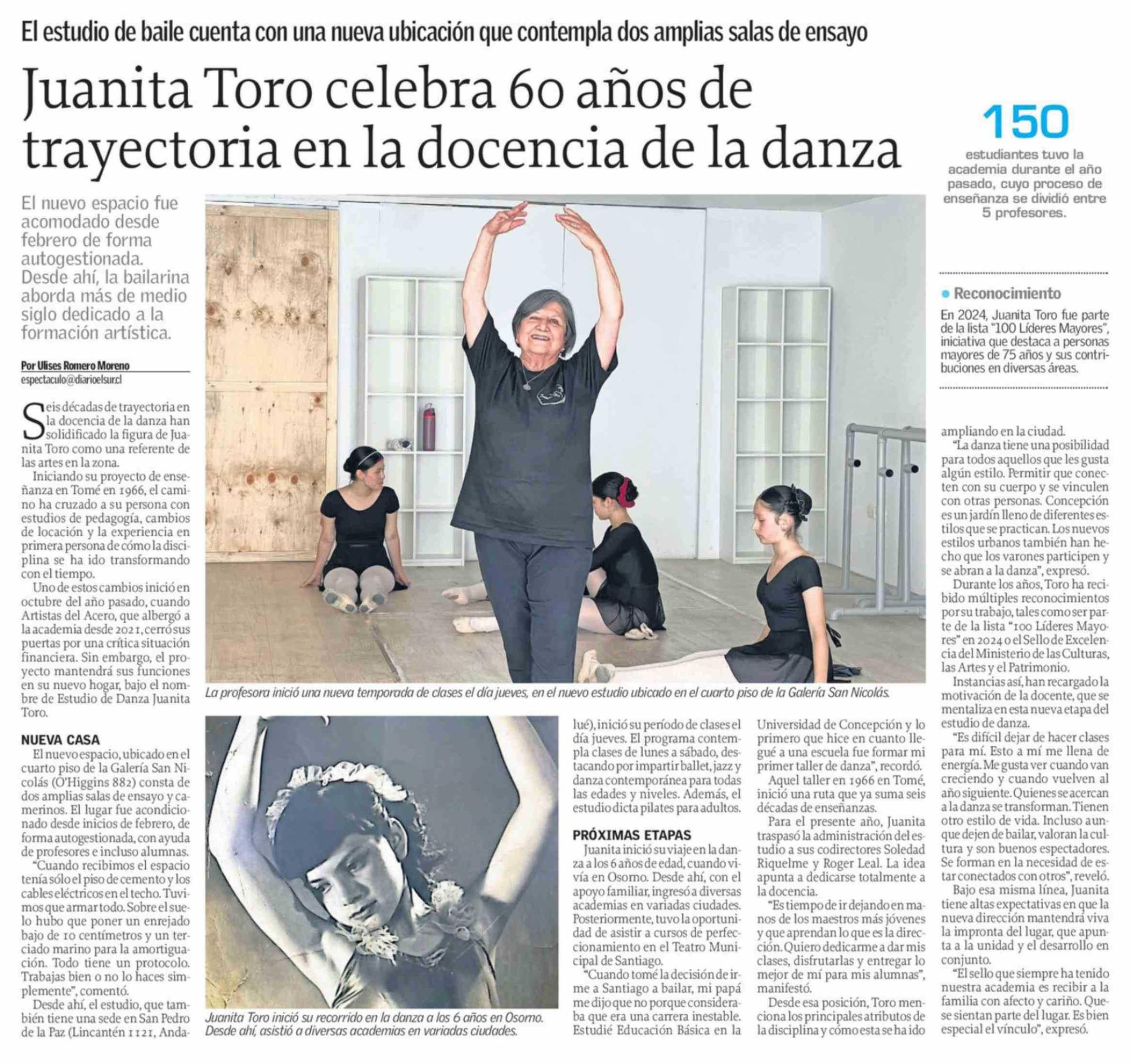 Juanita Toro celebra 60 años de trayectoria en la docencia de la danza