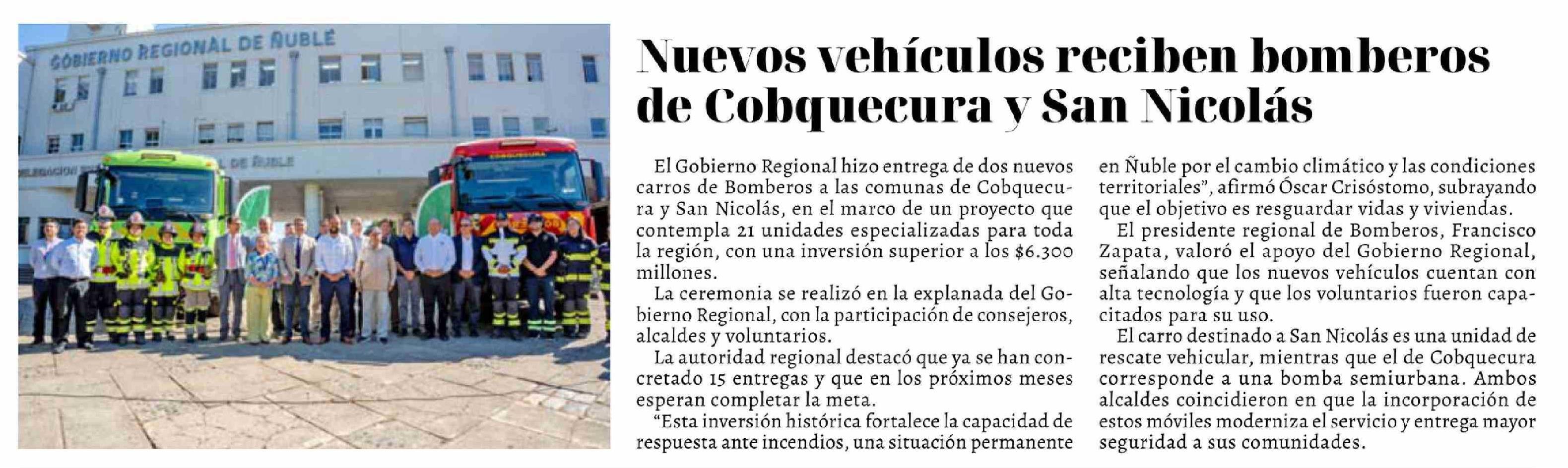 Nuevos vehículos reciben bomberos de Cobquecura y San Nicolás