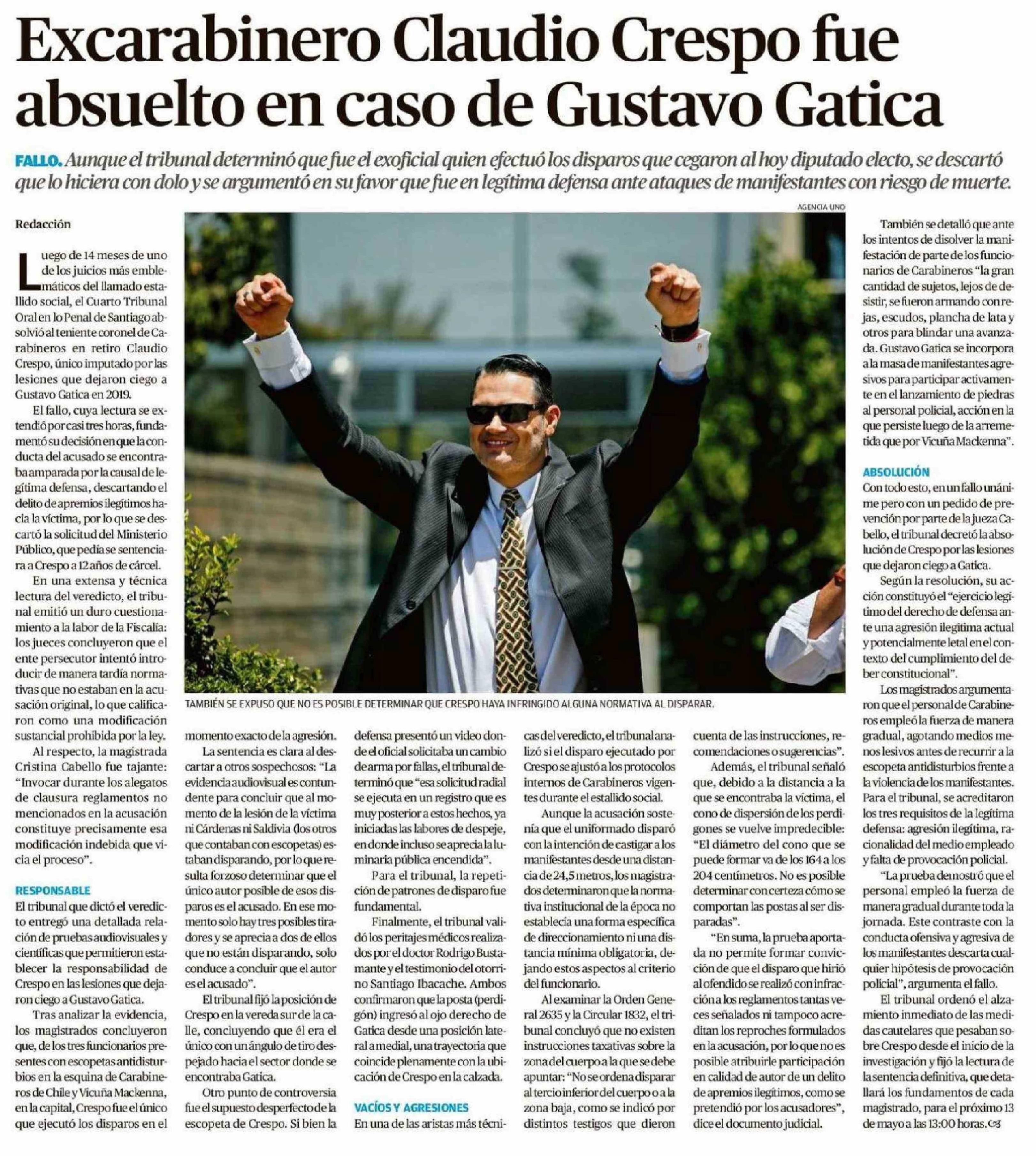 Excarabinero Claudio Crespo fue absuelto en caso de Gustavo Gatica
