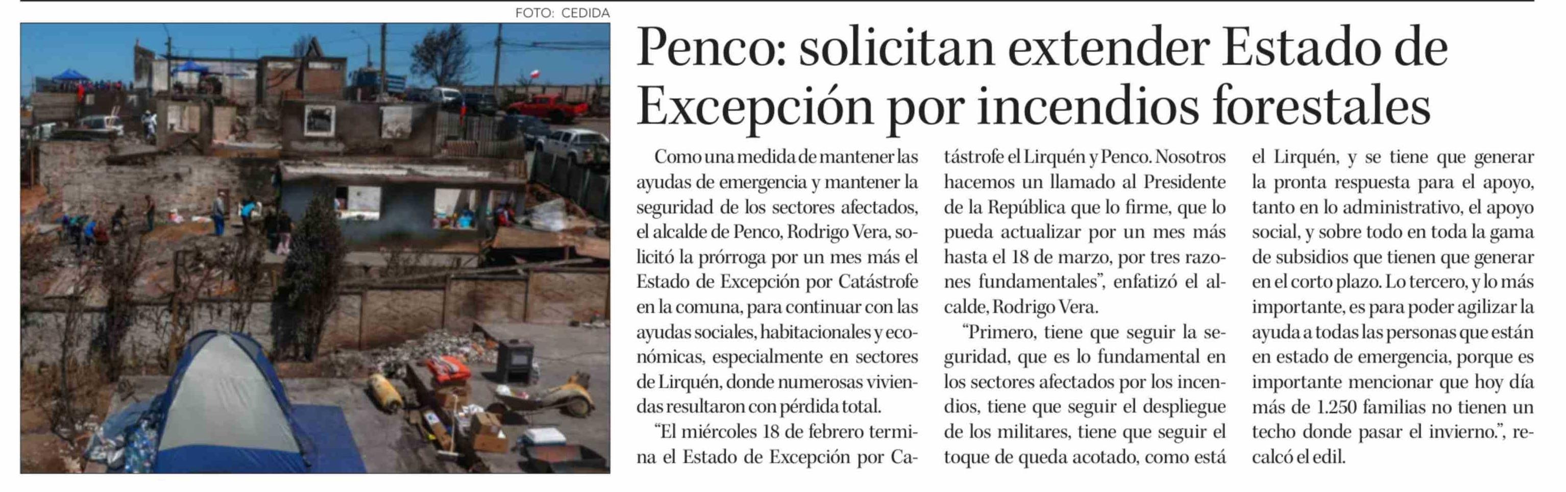 Penco: solicitan extender Estado de Excepción por incendios forestales