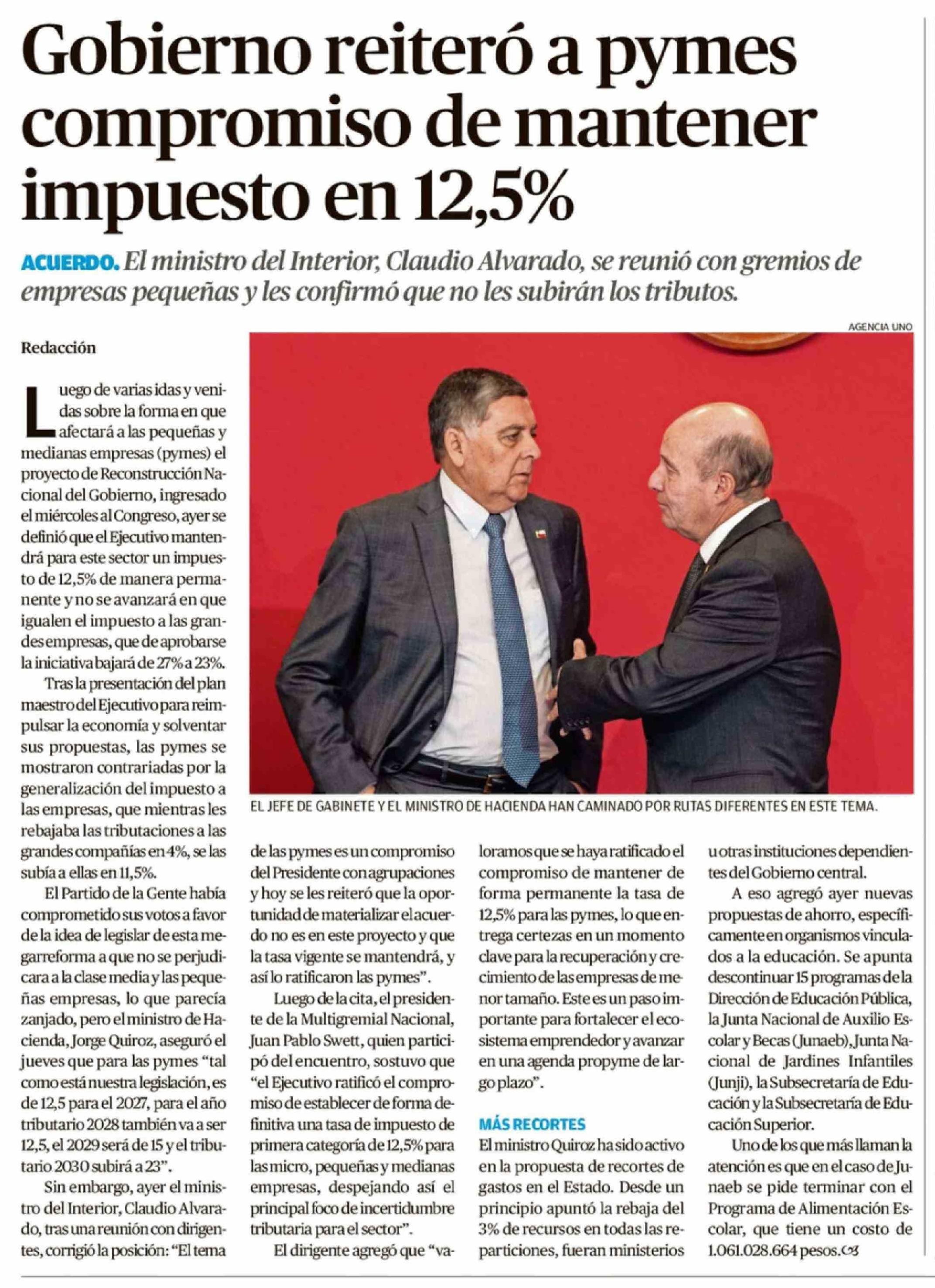 Gobierno reiteró a pymes compromiso de mantener impuesto en 12,5%