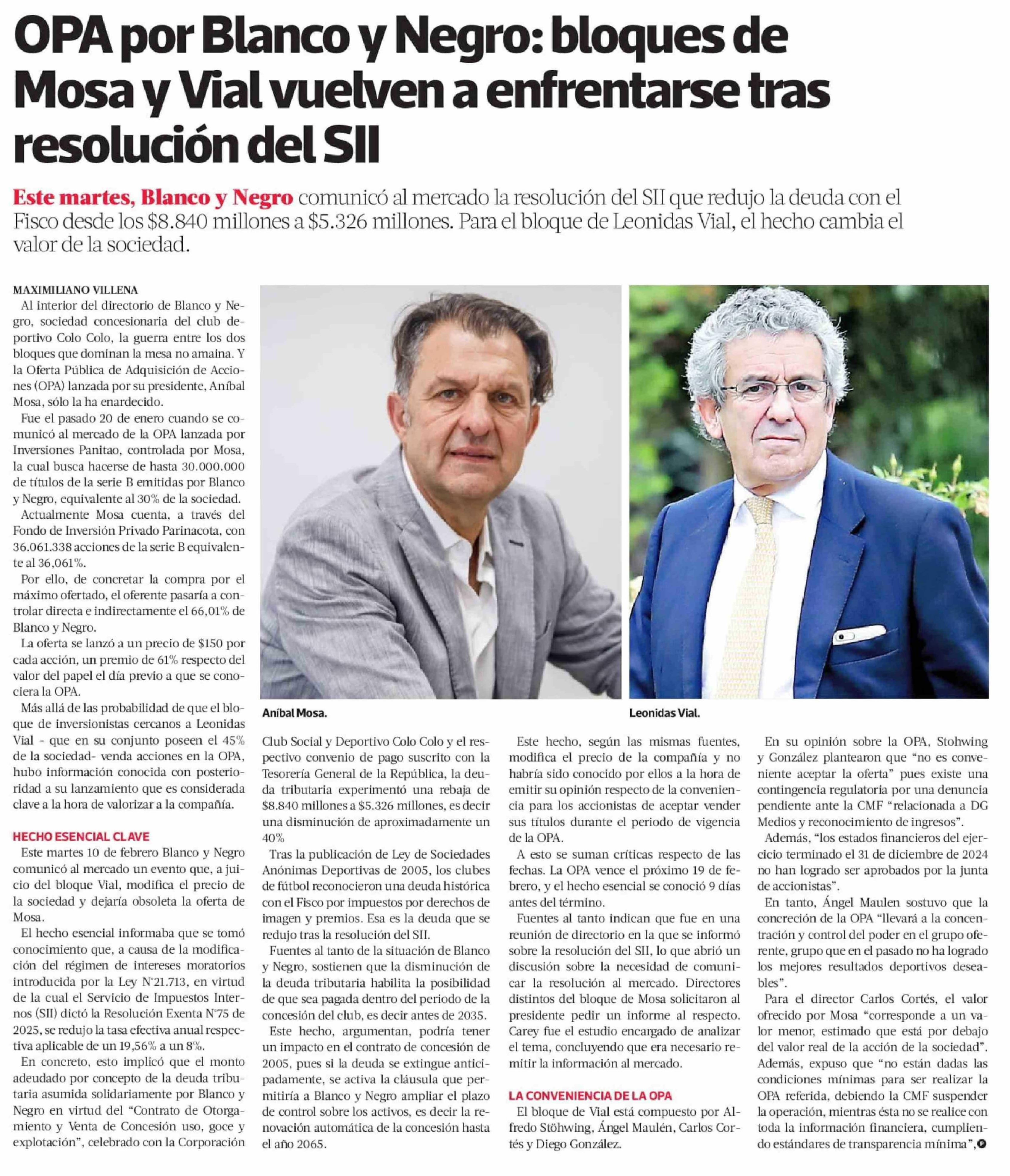 OPA por Blanco y Negro: bloques de Mosa y Vial vuelven a enfrentarse tras resolución del SII