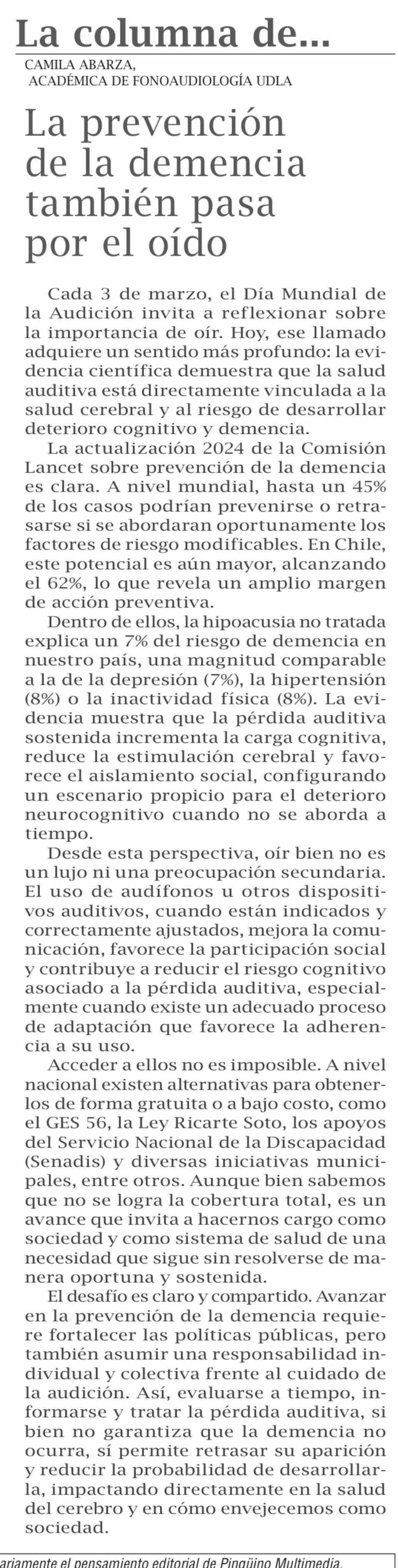 Columnas de Opinión: La prevención de la demencia también pasa por el oído