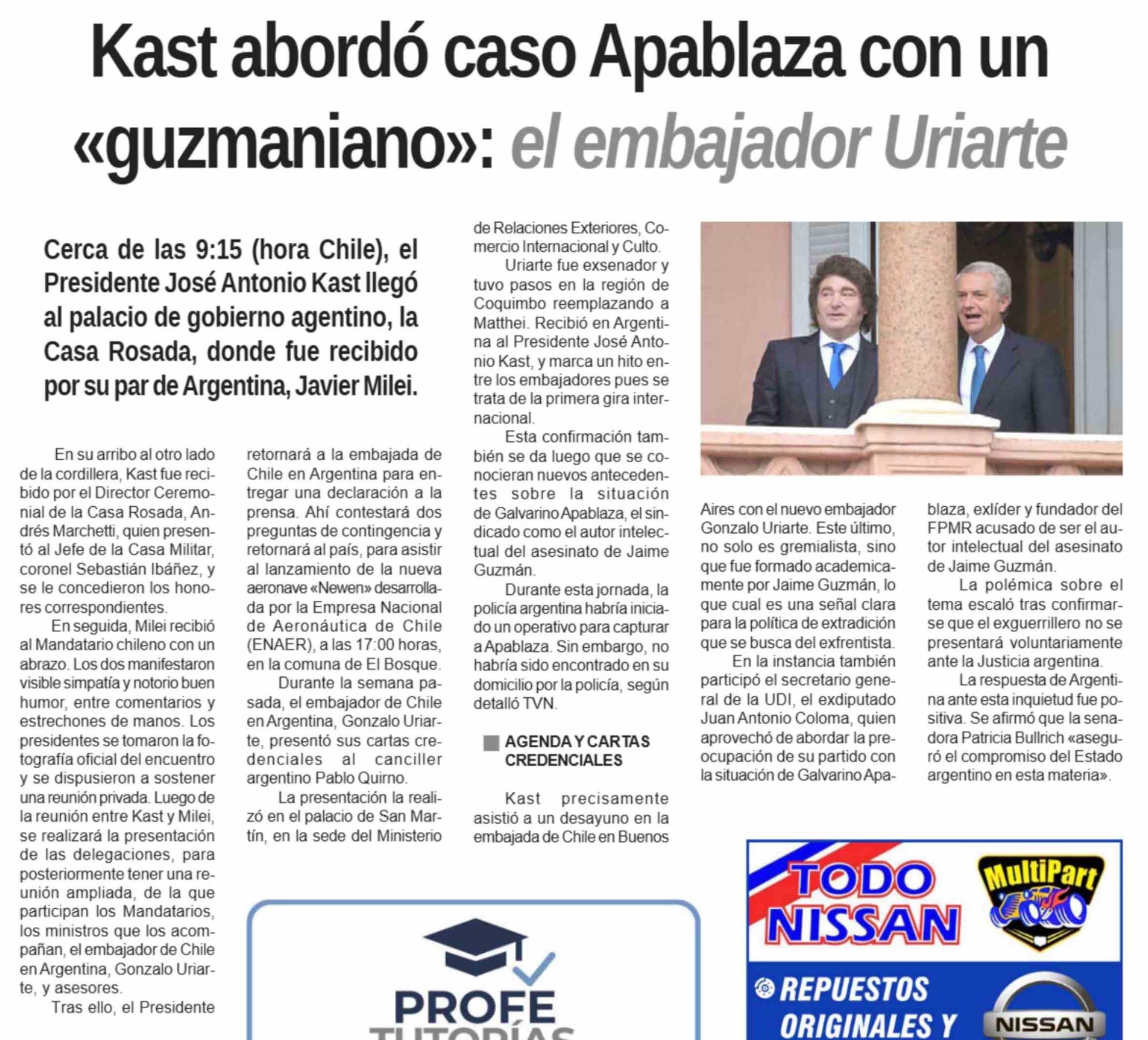 Kast abordó caso Apablaza con un «guzmaniano»: el embajador Uriarte