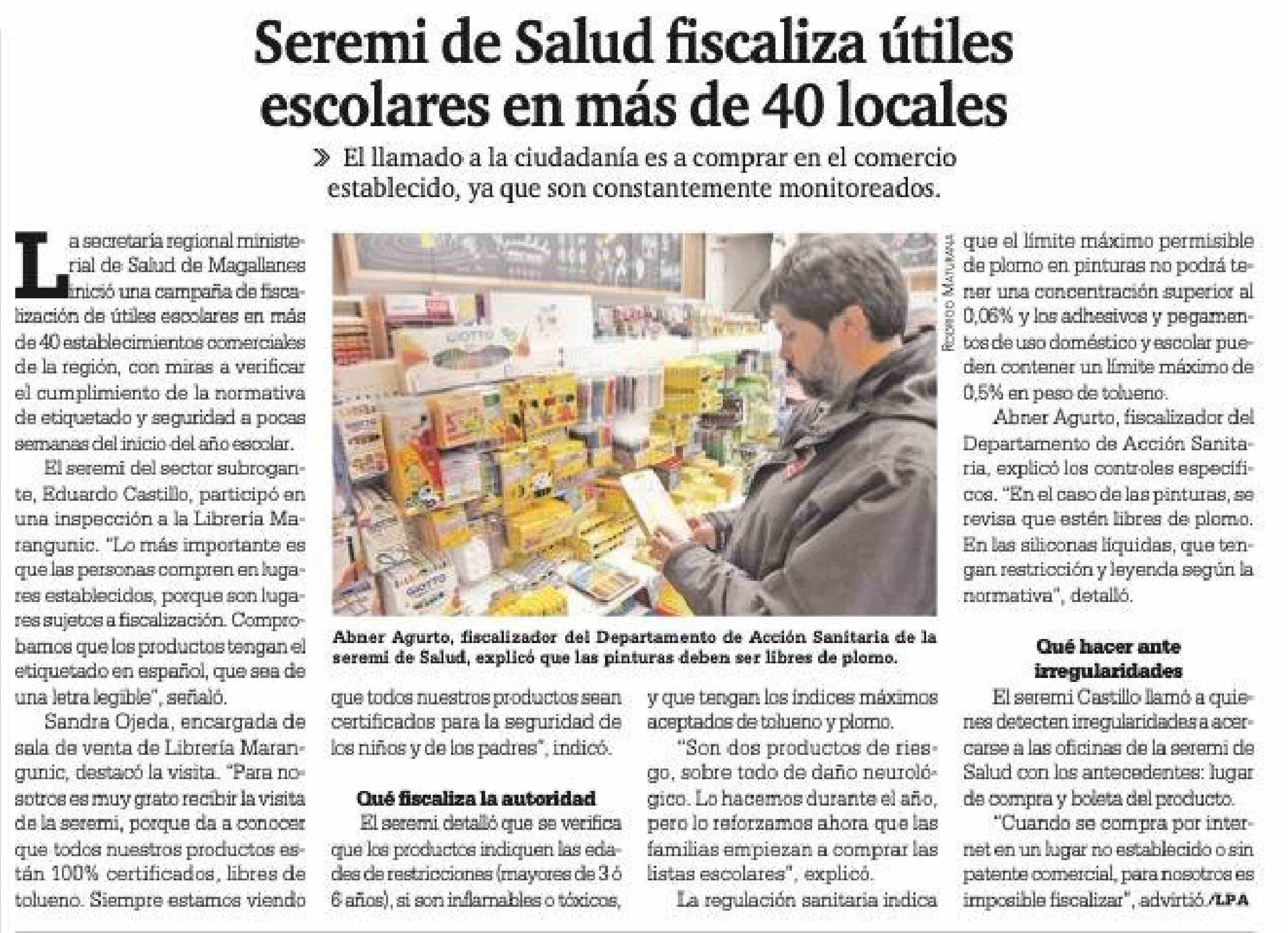 Seremi de Salud fiscaliza útiles escolares en más de 40 locales