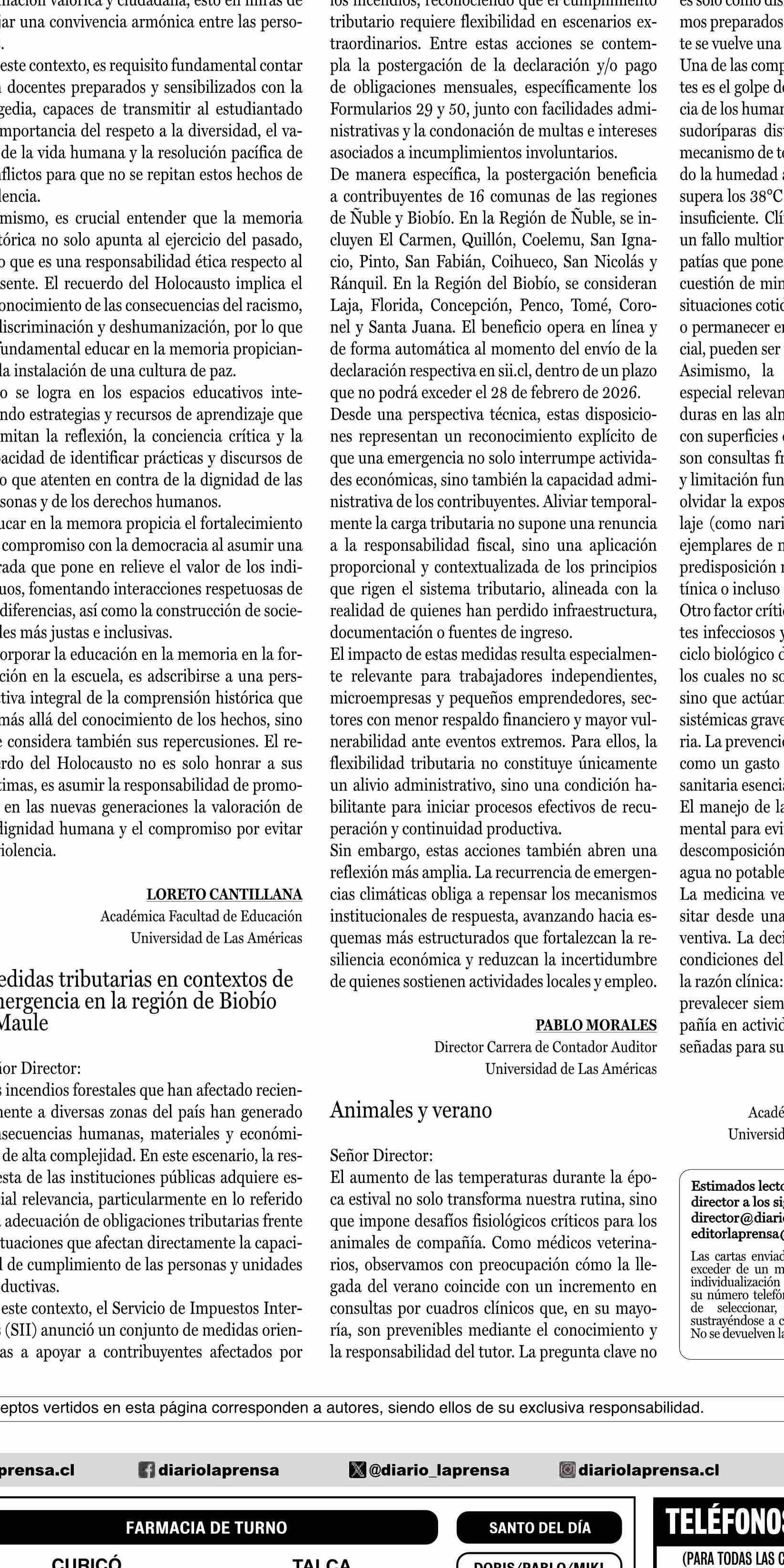 Cartas: Medidas tributarias en contextos de emergencia en la región de Biobío y Maule