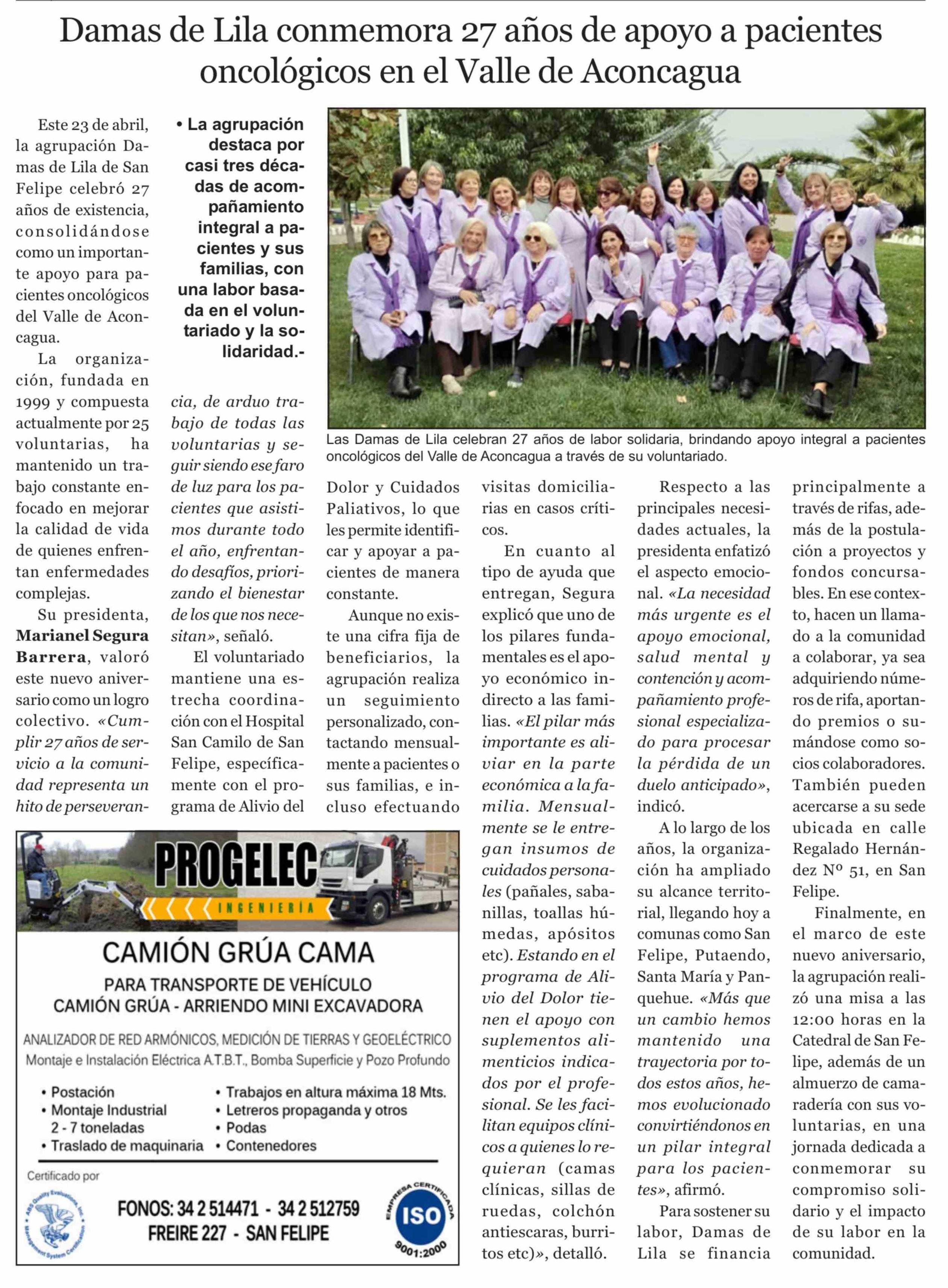 Damas de Lila conmemora 27 años de apoyo a pacientes oncológicos en el Valle de Aconcagua