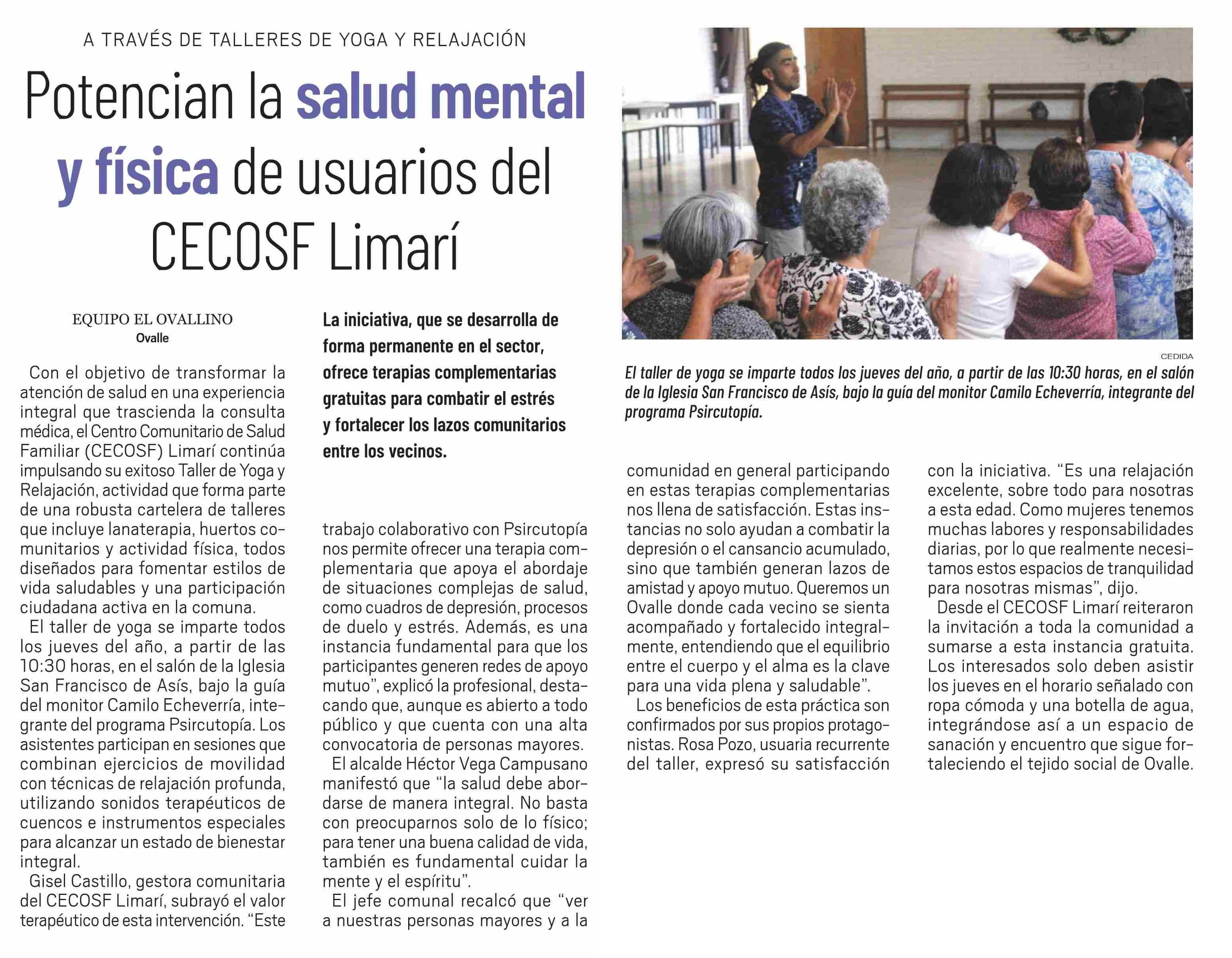 Potencian la salud mental y física de usuarios del CECOSF Limarí
