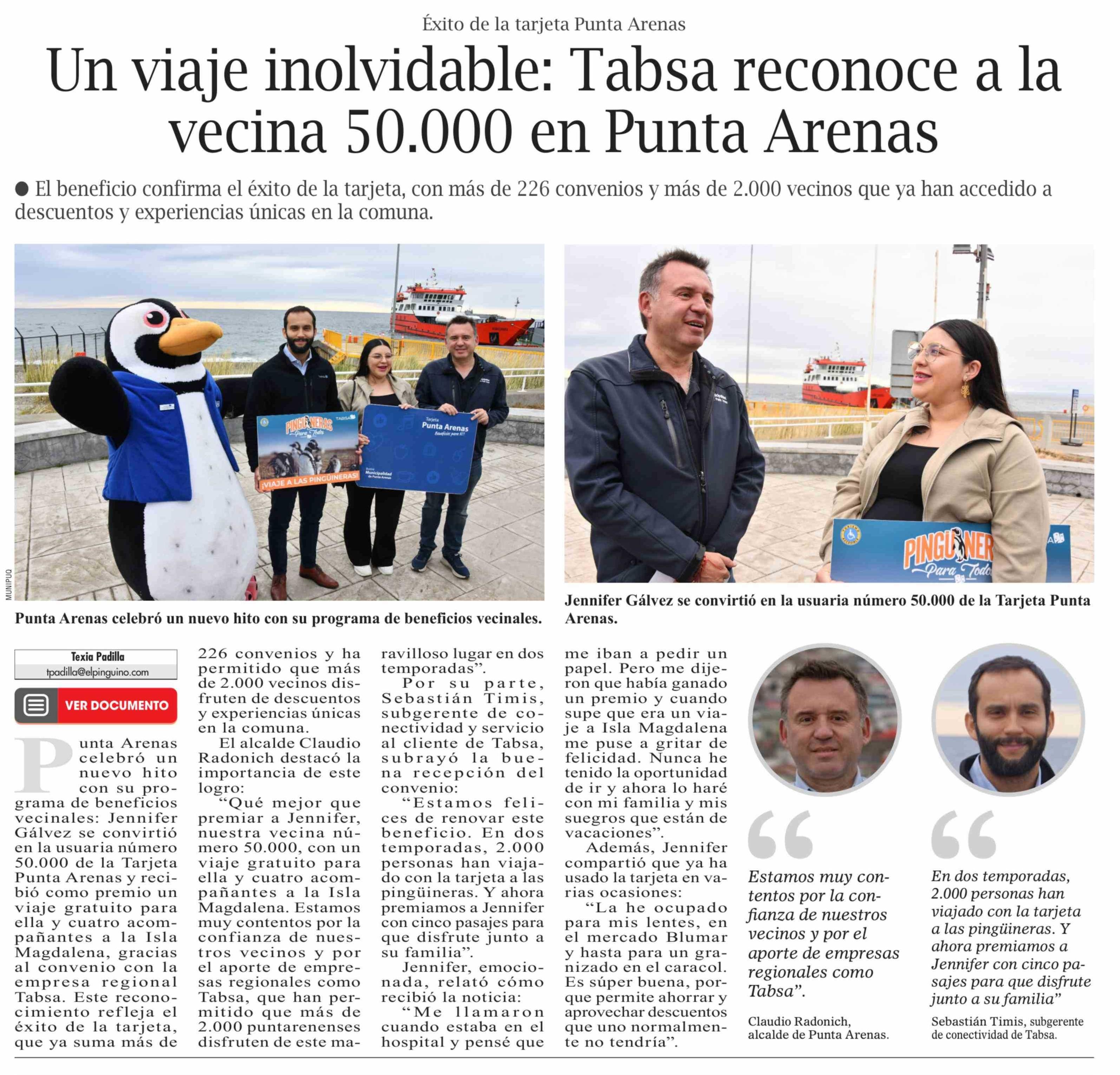 Un viaje inolvidable: Tabsa reconoce a la vecina 50.000 en Punta Arenas