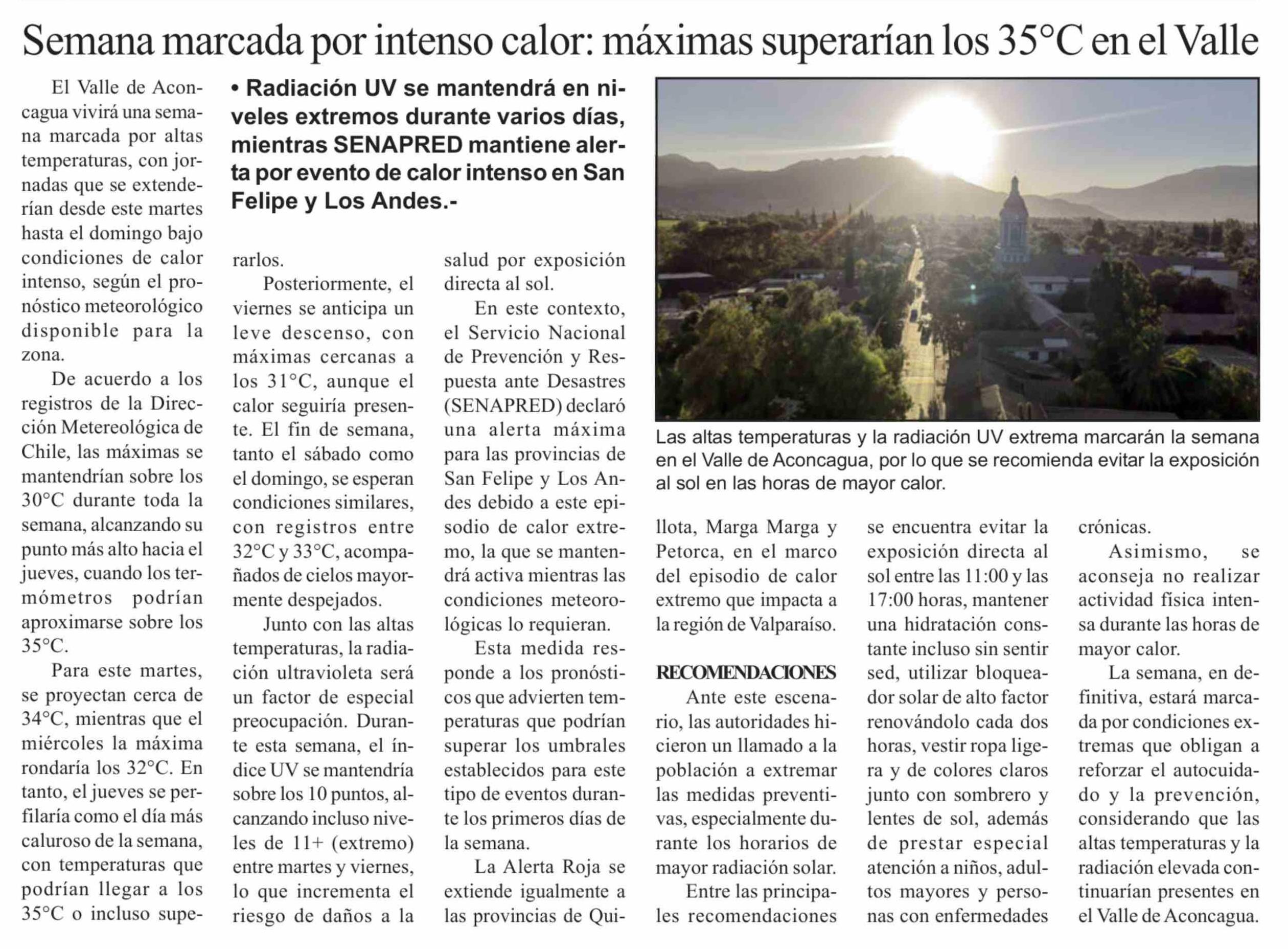 Semana marcada por intenso calor: máximas superarían los 35? en el Valle