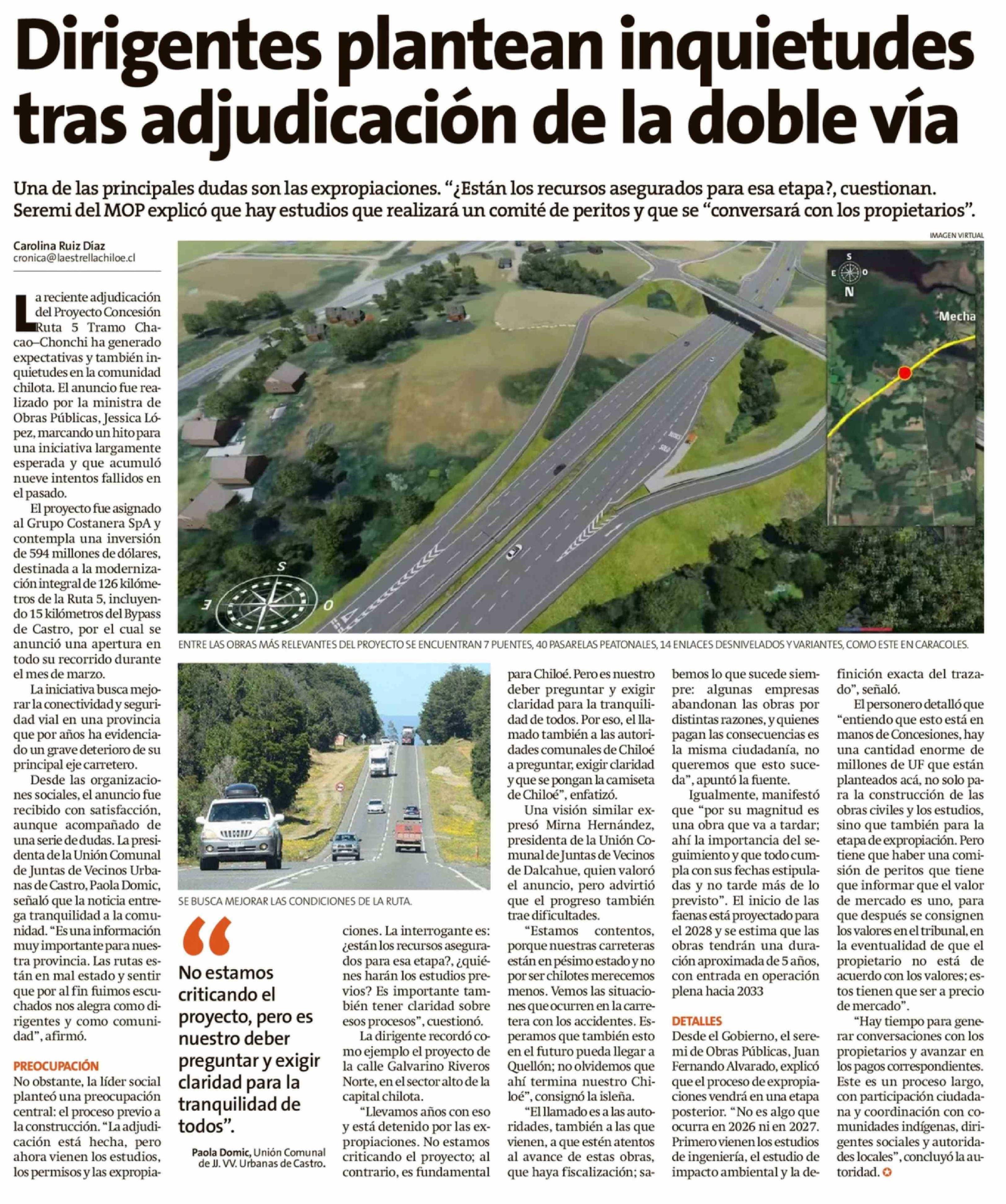 Dirigentes plantean inquietudes tras adjudicación de la doble vía