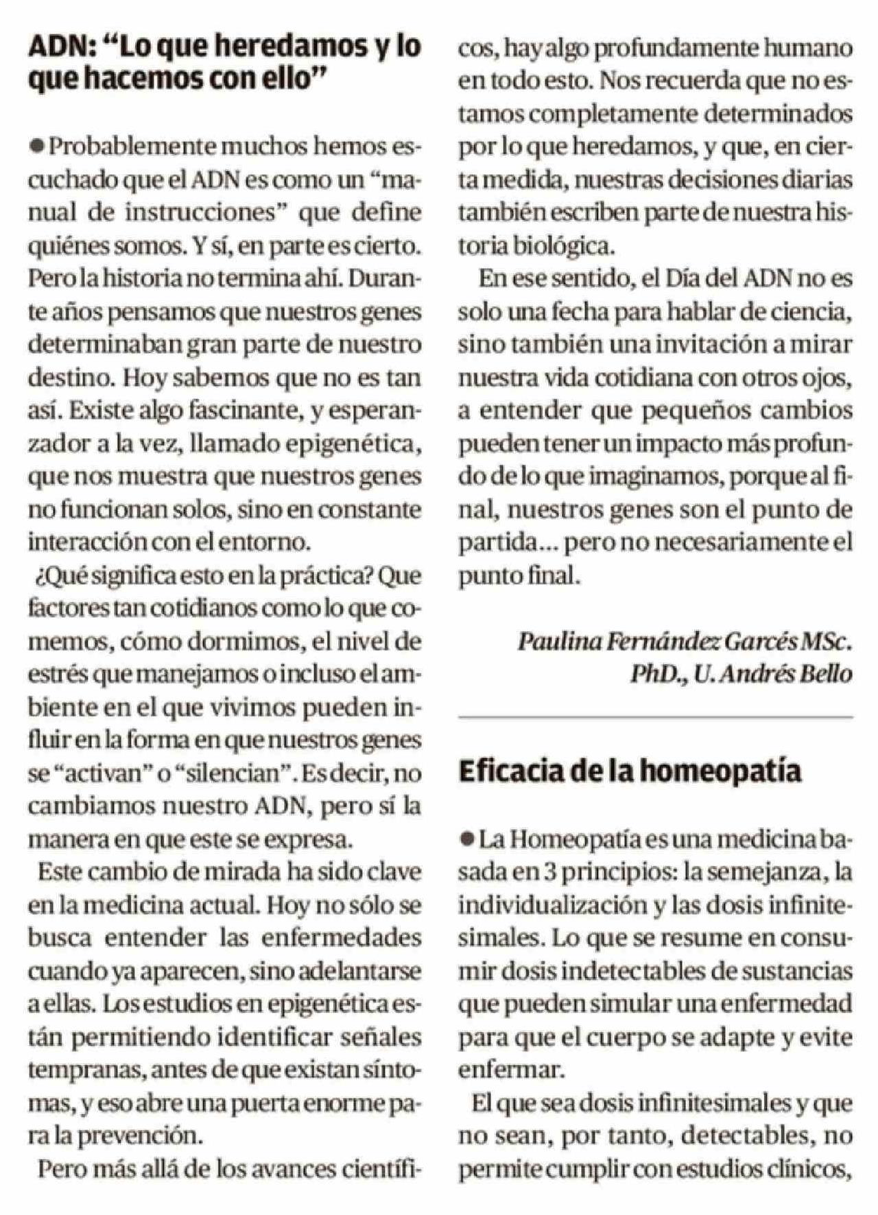 Cartas: ADN: "Lo que heredamos y lo que hacemos con ello"