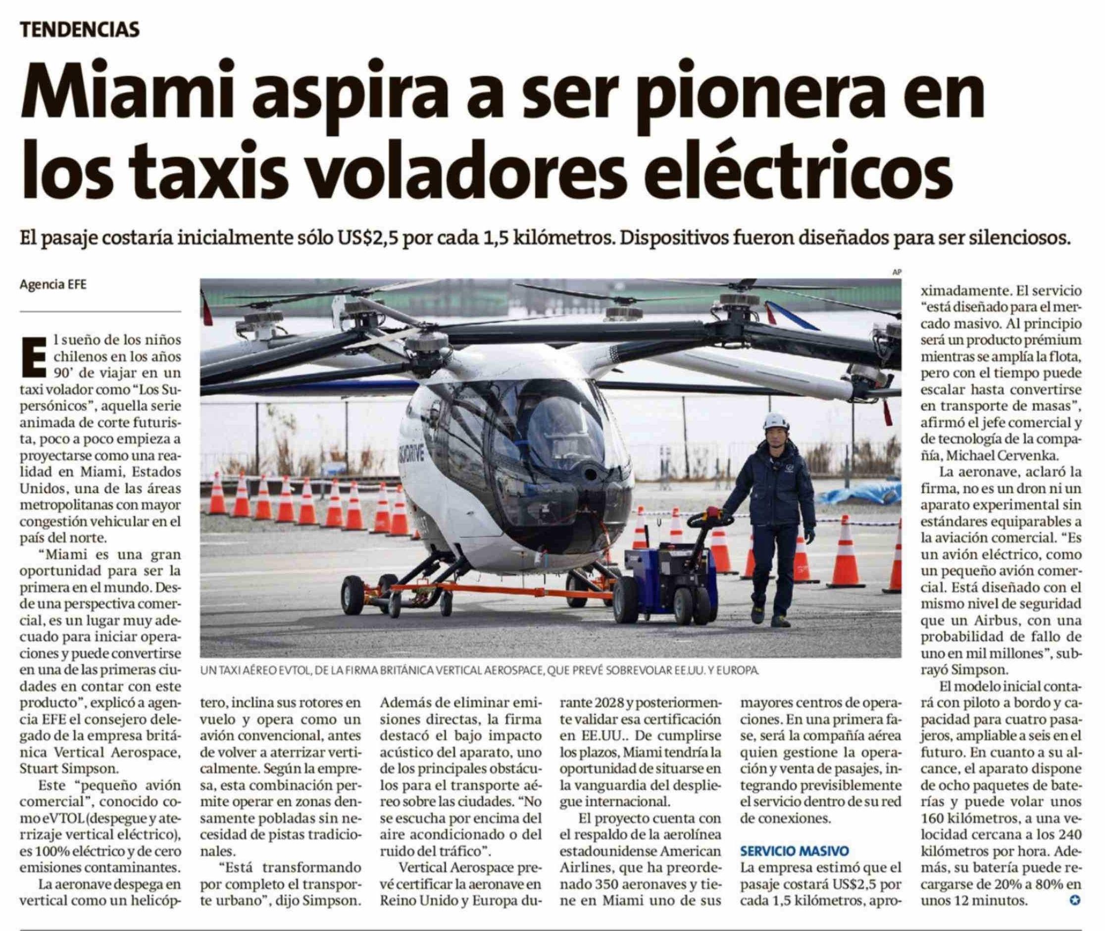 Miami aspira a ser pionera en los taxis voladores eléctricos