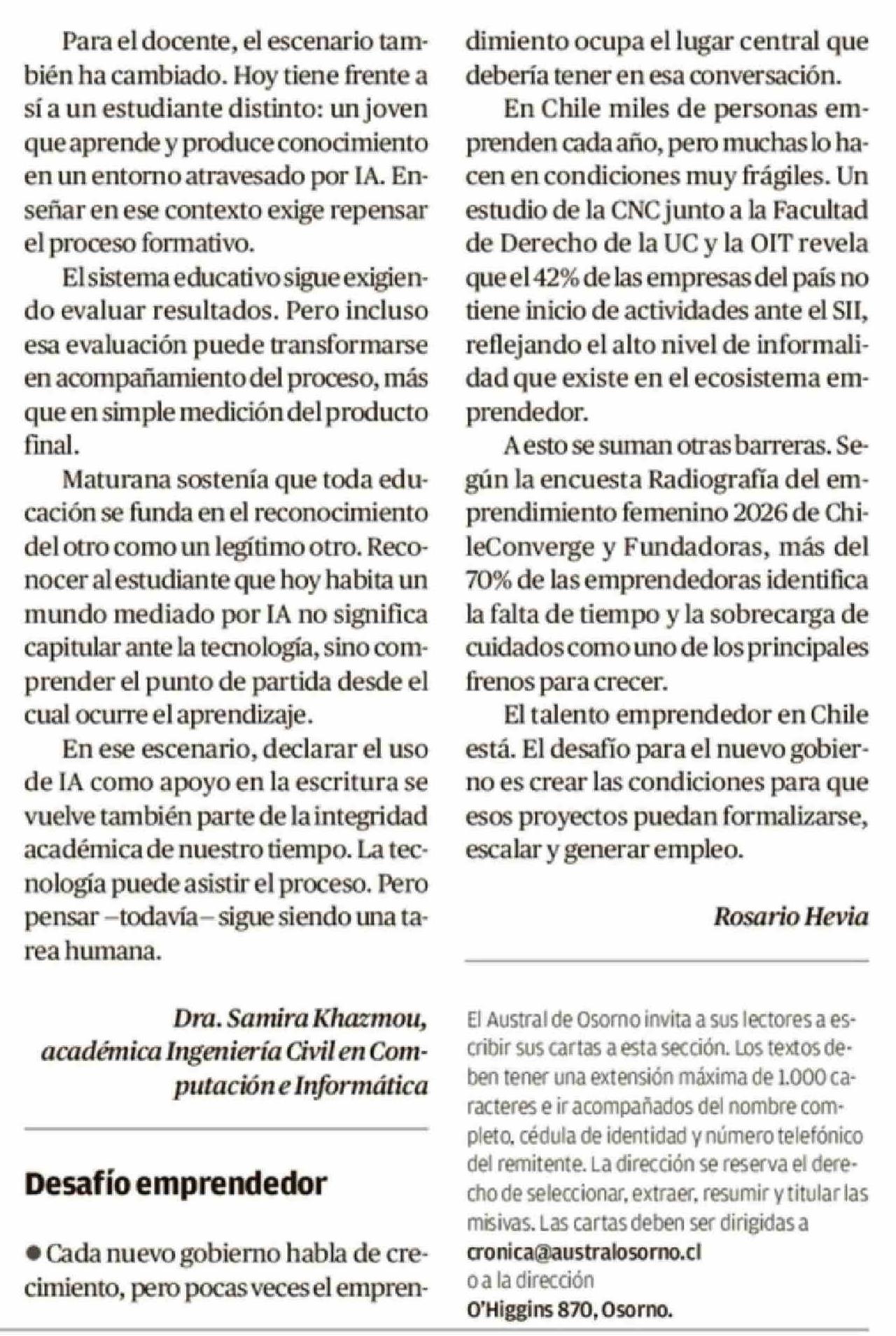 Fuente: El Austral de Osorno (El Austral de Osorno) Página(s): 9