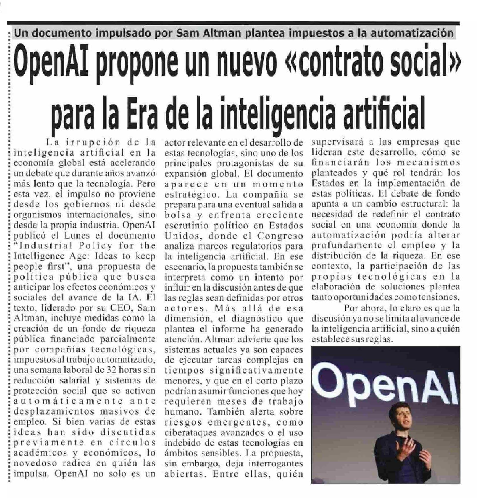 OpenAl propone un nuevo «contrato social» para la Era de la inteligencia artificial