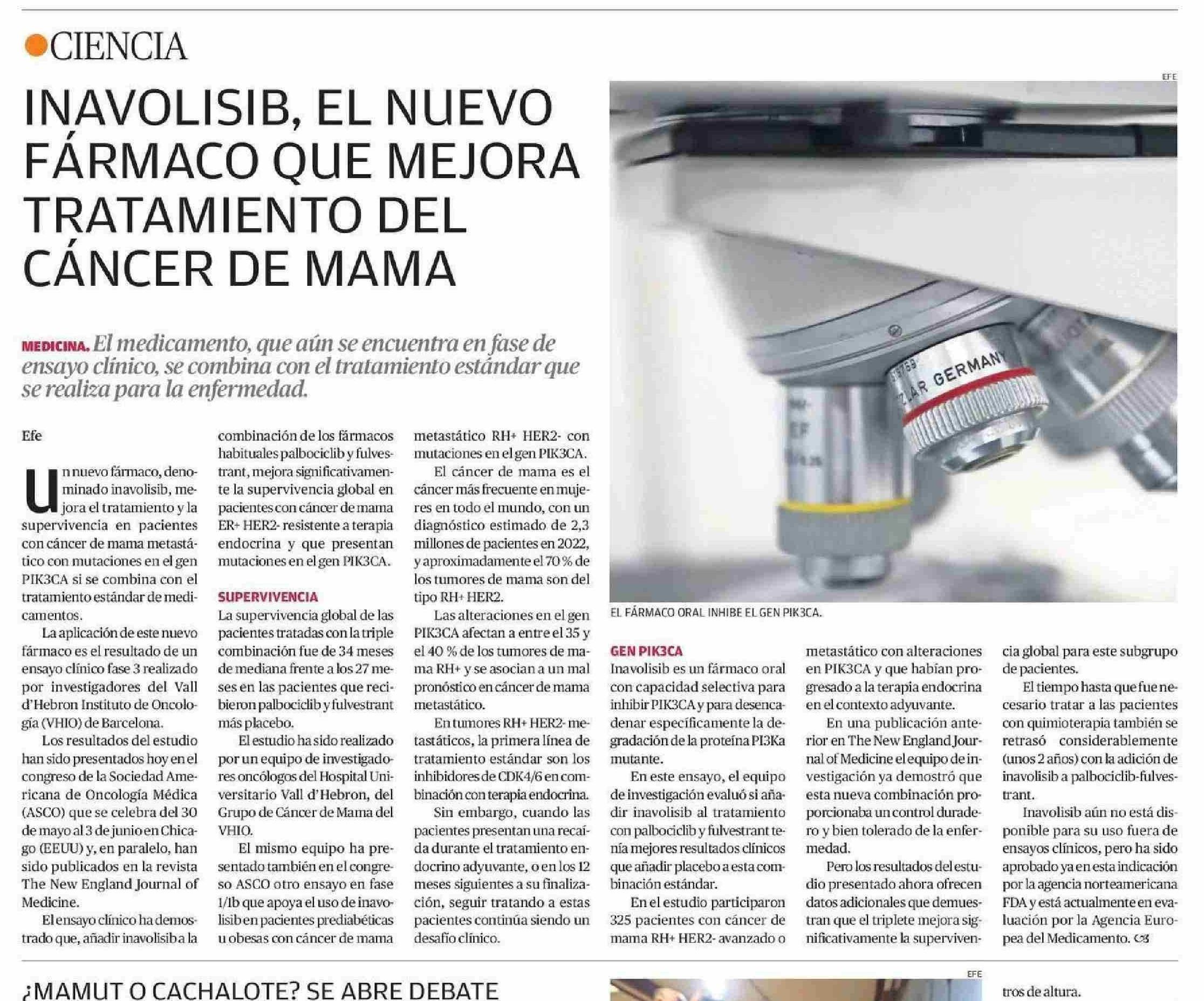 INAVOLISIB, EL NUEVO FARMACO QUE MEJORA TRATAMIENTO DEL CANCER DE MAMA