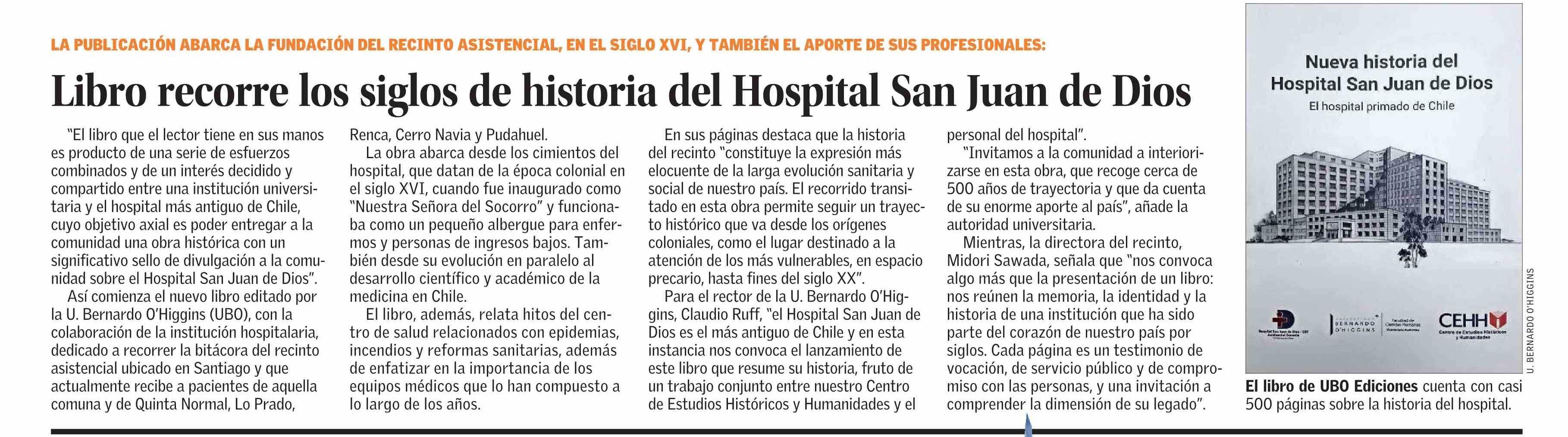 Título: Libro recorre los siglos de historia del Hospital San Juan de Dios