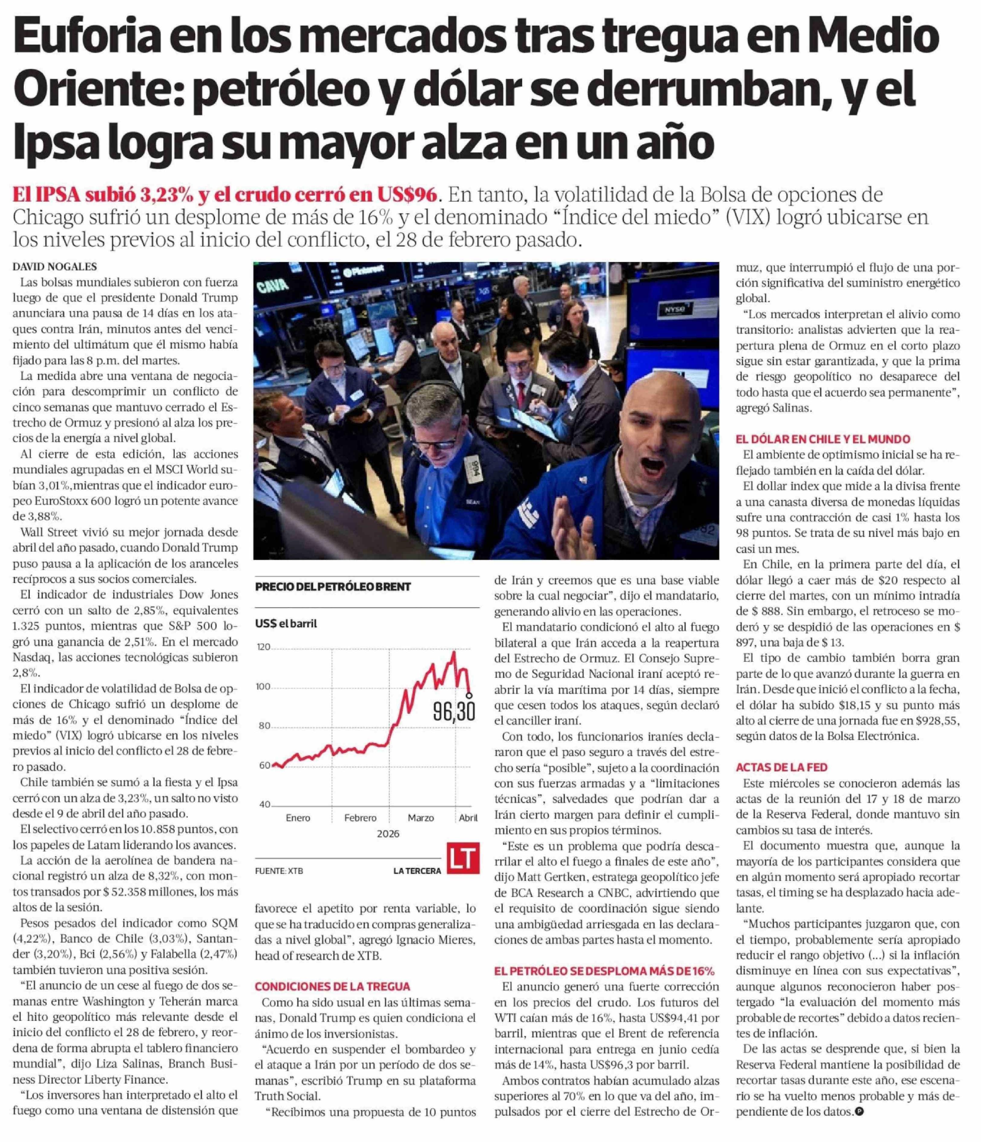 Euforia en los mercados tras tregua en Medio Oriente: petróleo y dólar se derrumban, y el Ipsa logra su mayor alza en un año