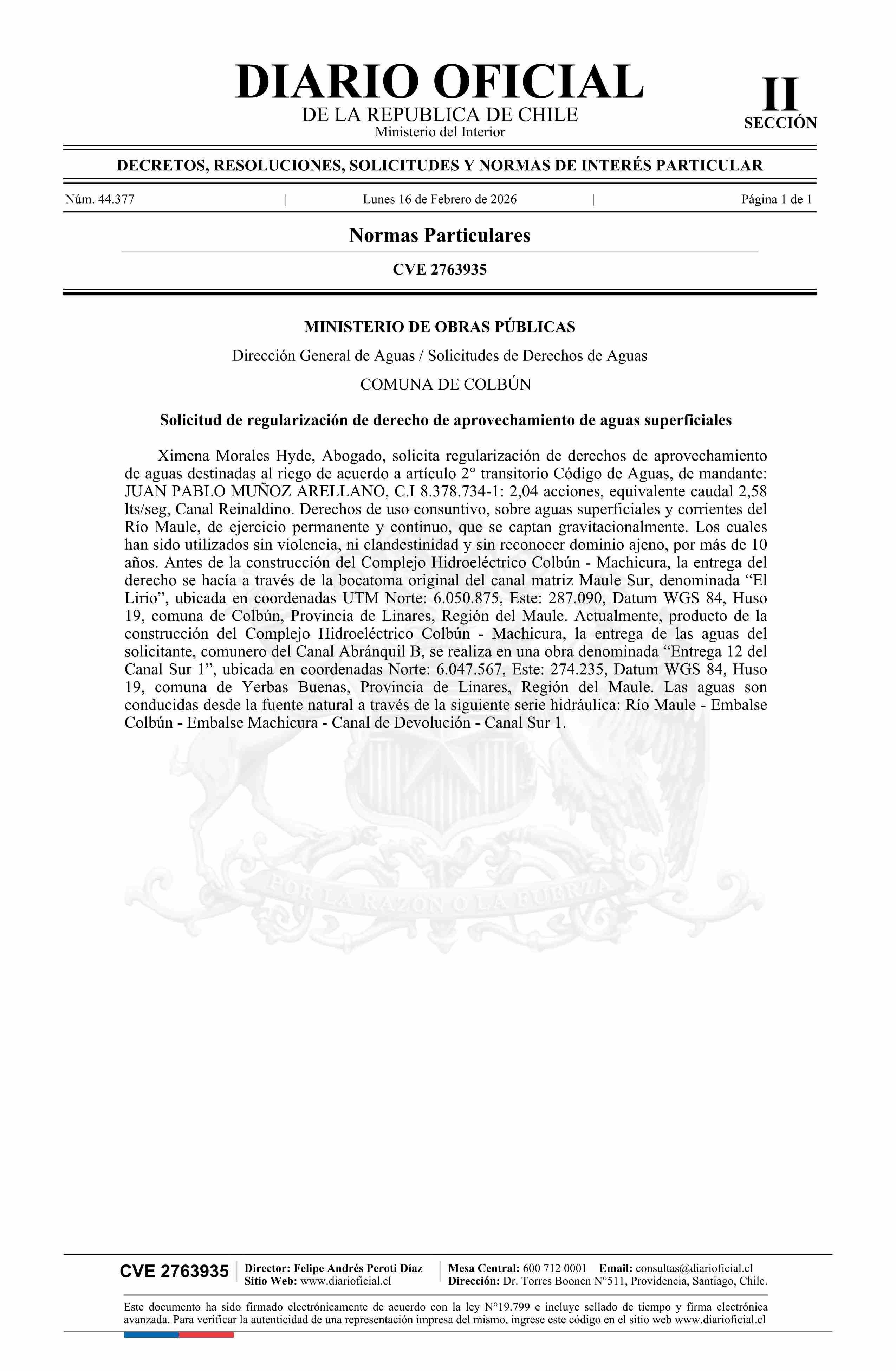 Diario Oficial Edición Electrónica (Diario Oficial de Chile - 2 Normas Particulares)