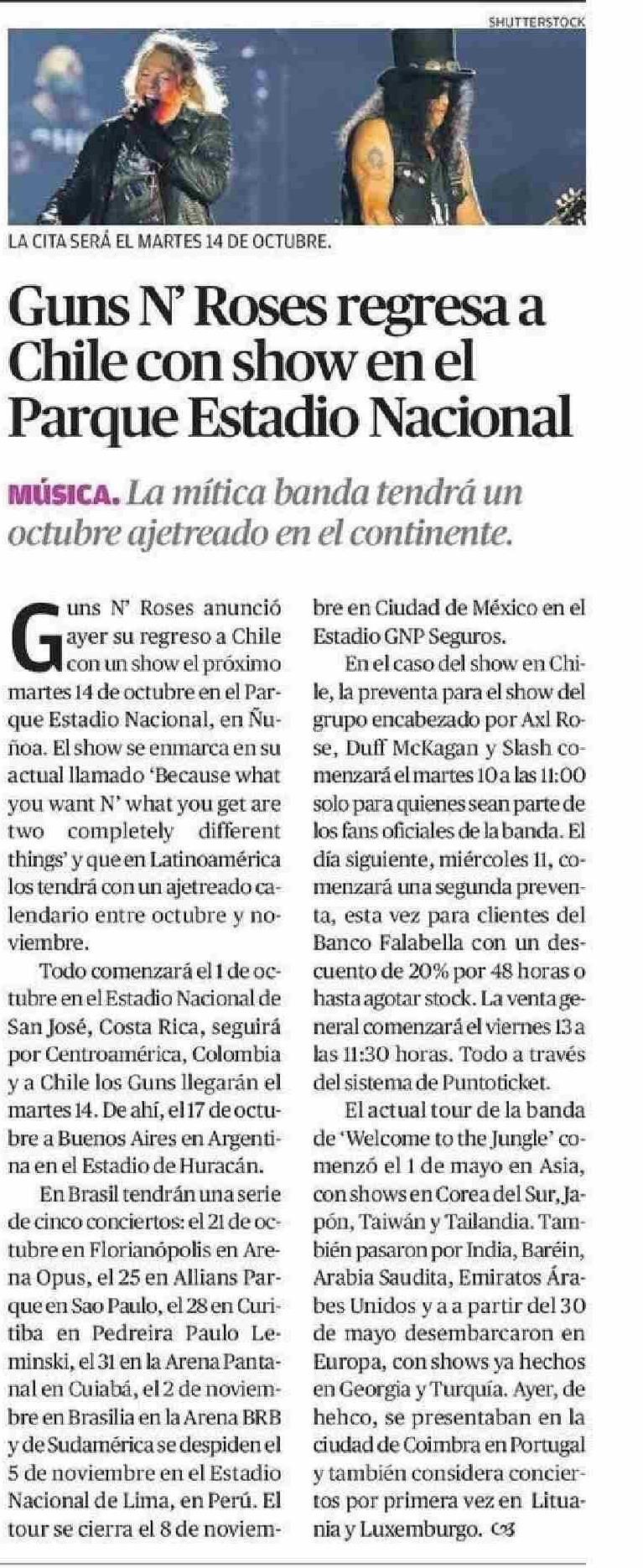 Guns N' Roses regresa a Chile con show en el Parque Estadio Nacional
