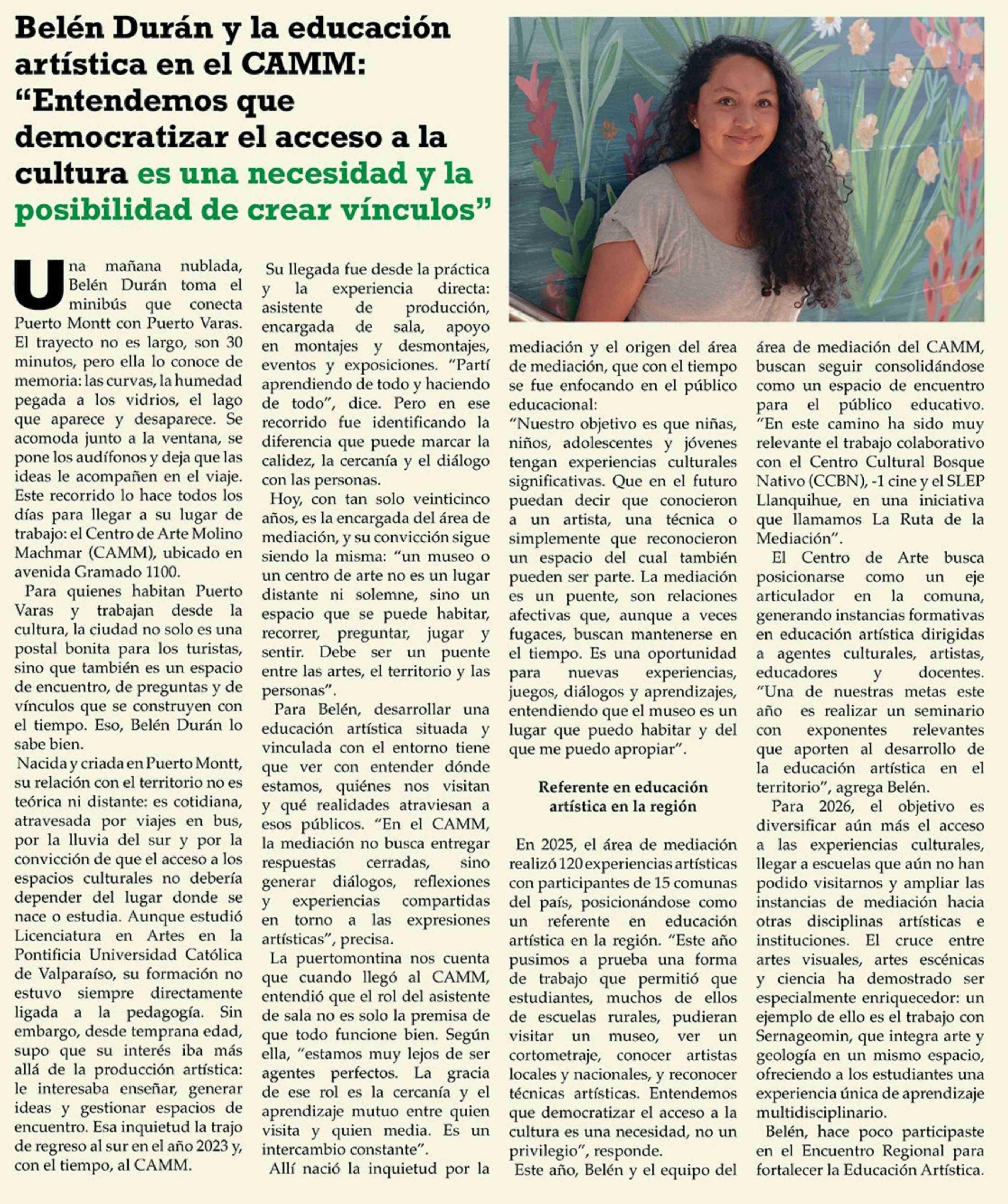 | Título: | Belén Durán y la educación artística en el CAMM: "Entendemos que democratizar el acceso a la cultura es una necesidad y la posibilidad de crear vínculos" |