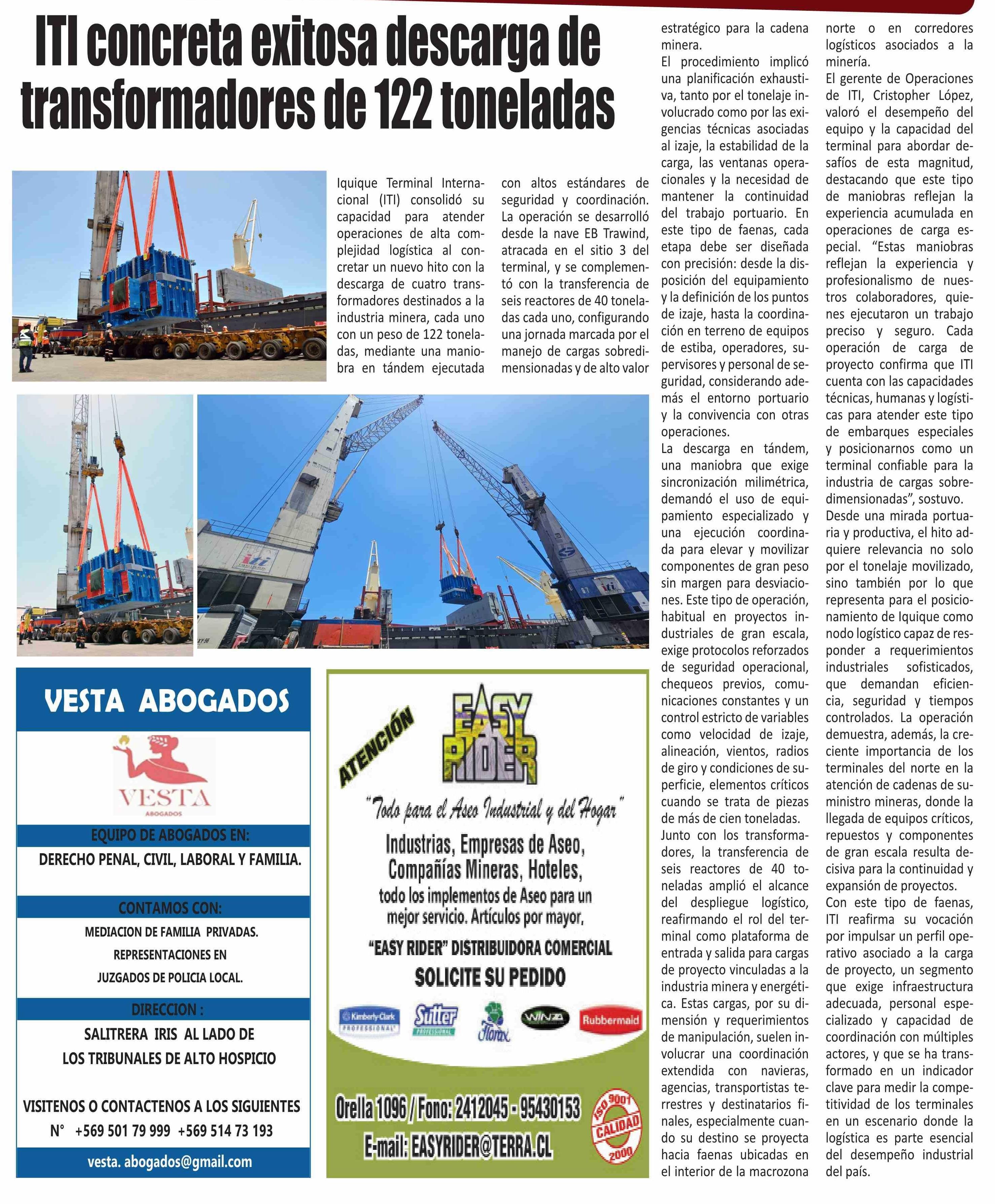 ITI concreta exitosa descarga de transformadores de 122 toneladas
