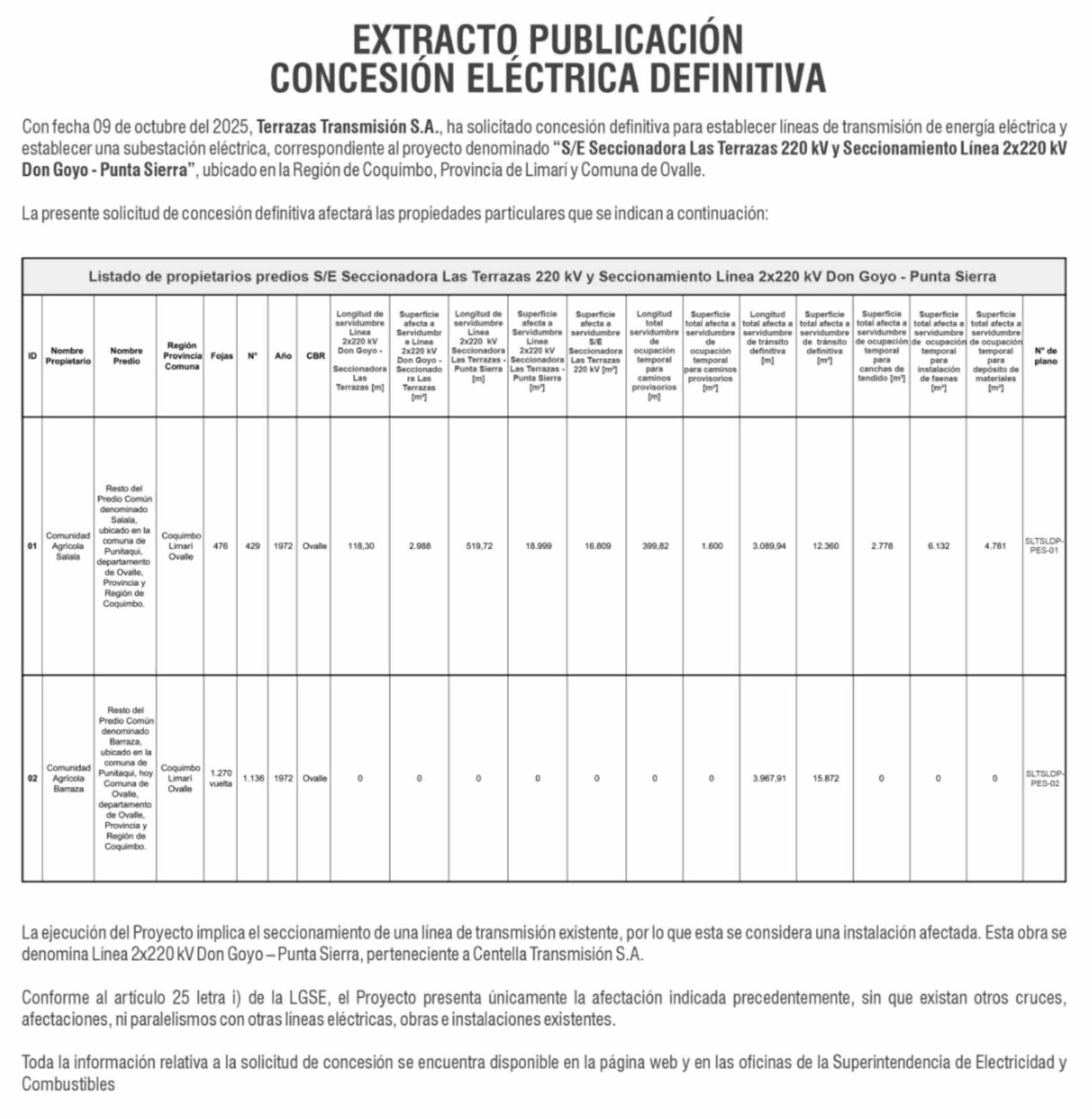 EXTRACTO PUBLICACIÓN CONCESIÓN ELÉCTRICA DEFINITIVA