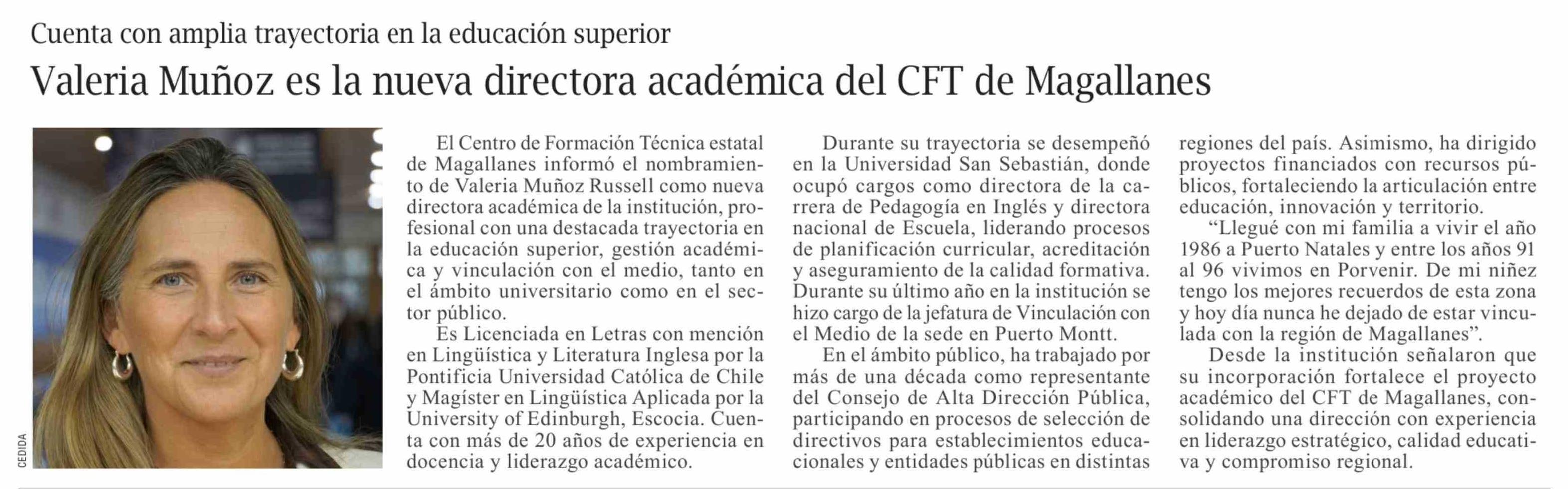 Valeria Muñoz es la nueva directora académica del CFT de Magallanes