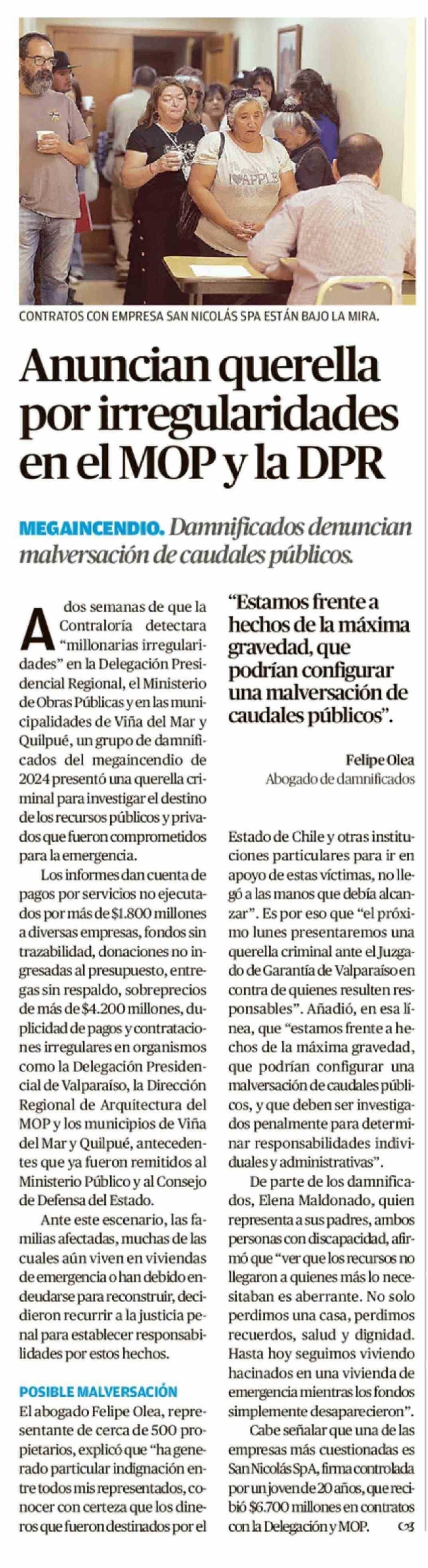 Anuncian querella por irregularidades en el MOP y la DPR
