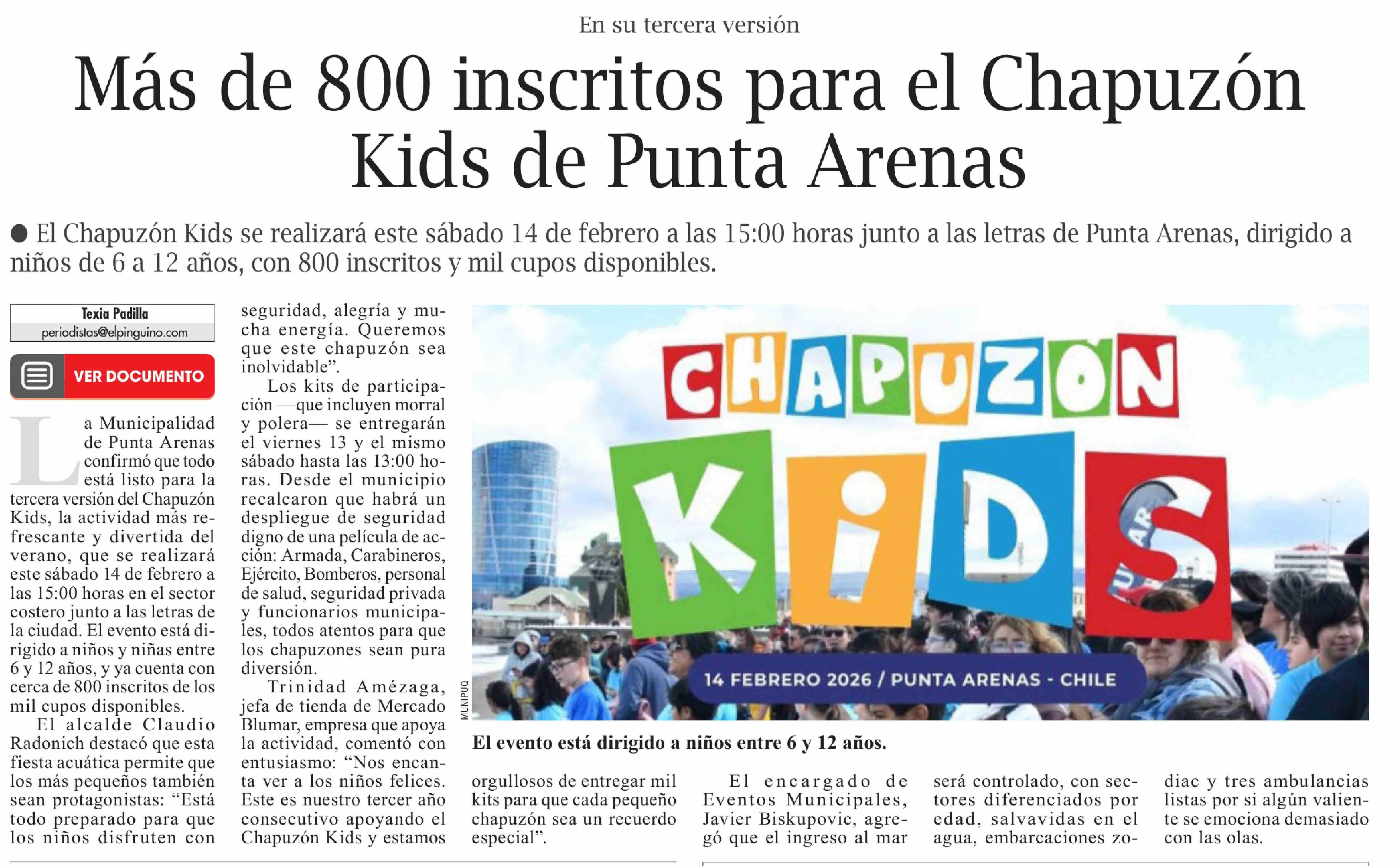 Más de 800 inscritos para el Chapuzón Kids de Punta Arenas
