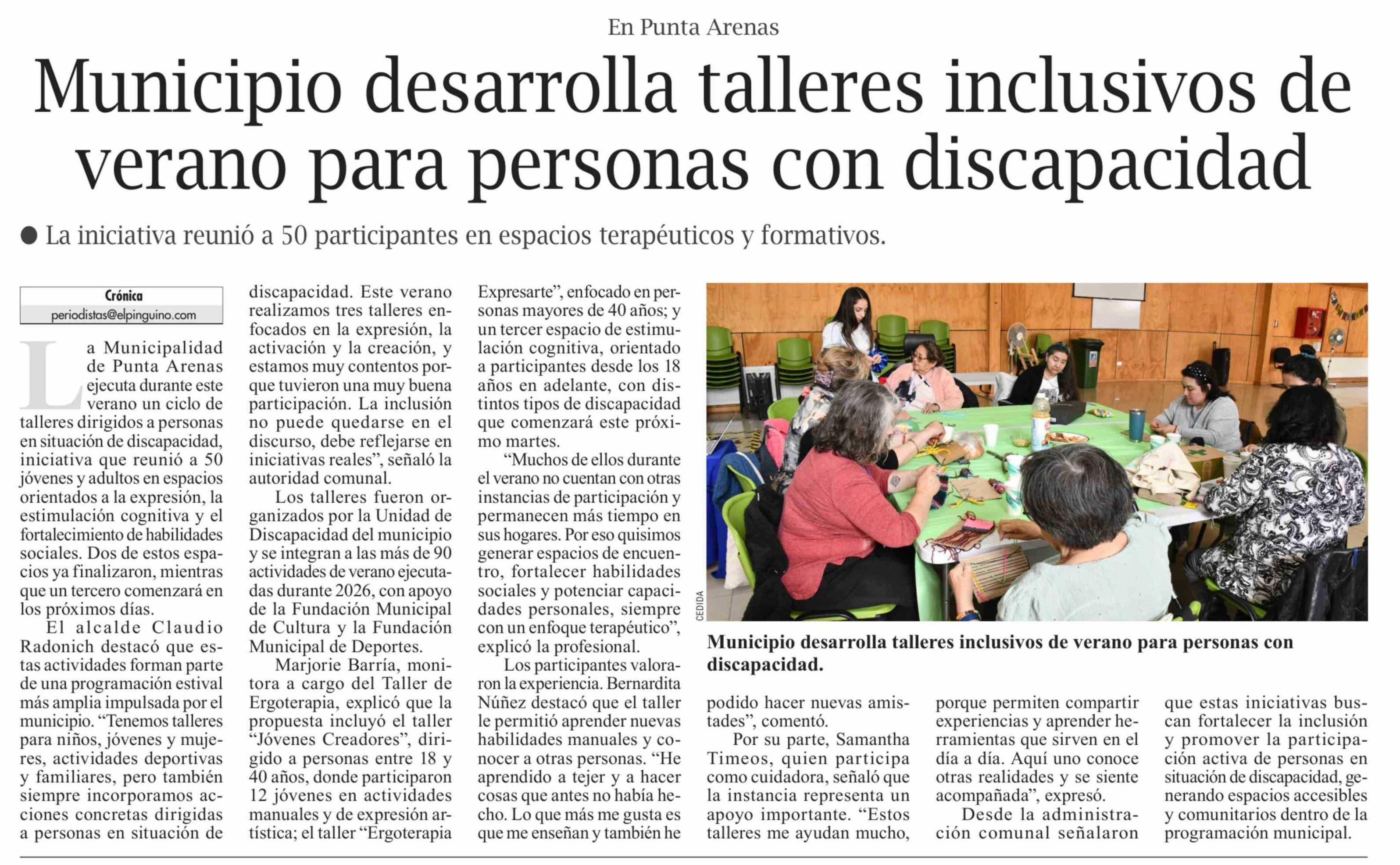 Municipio desarrolla talleres inclusivos de verano para personas con discapacidad
